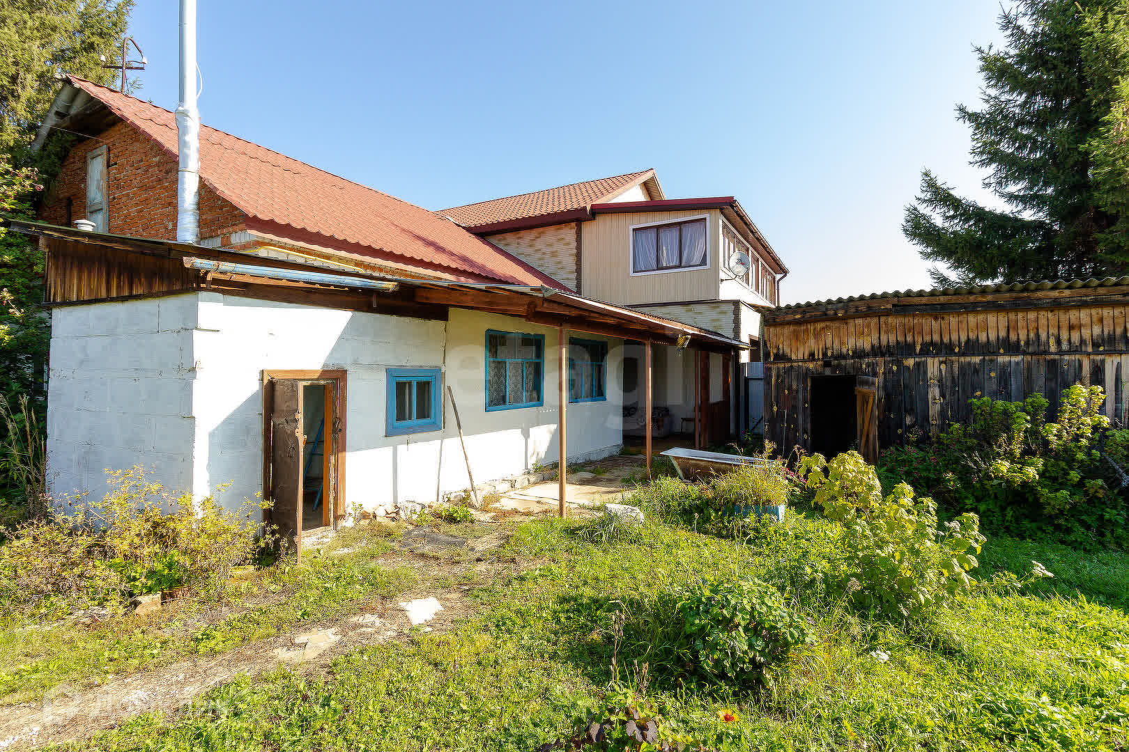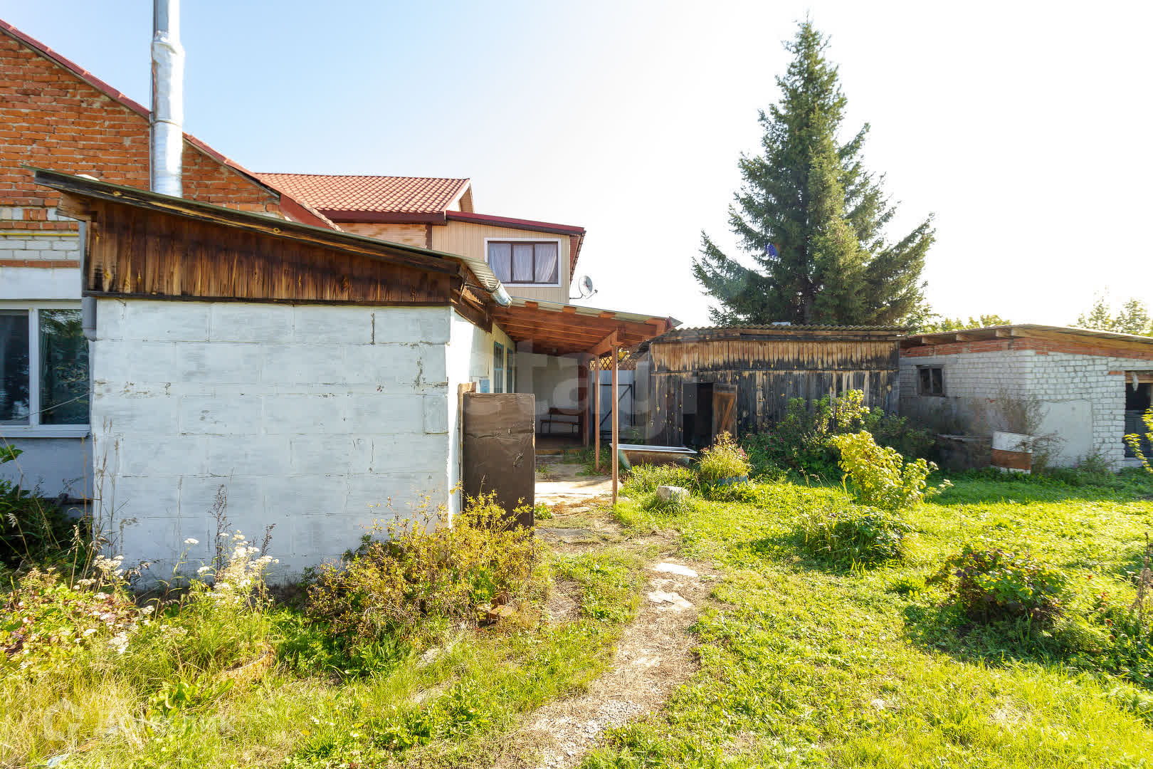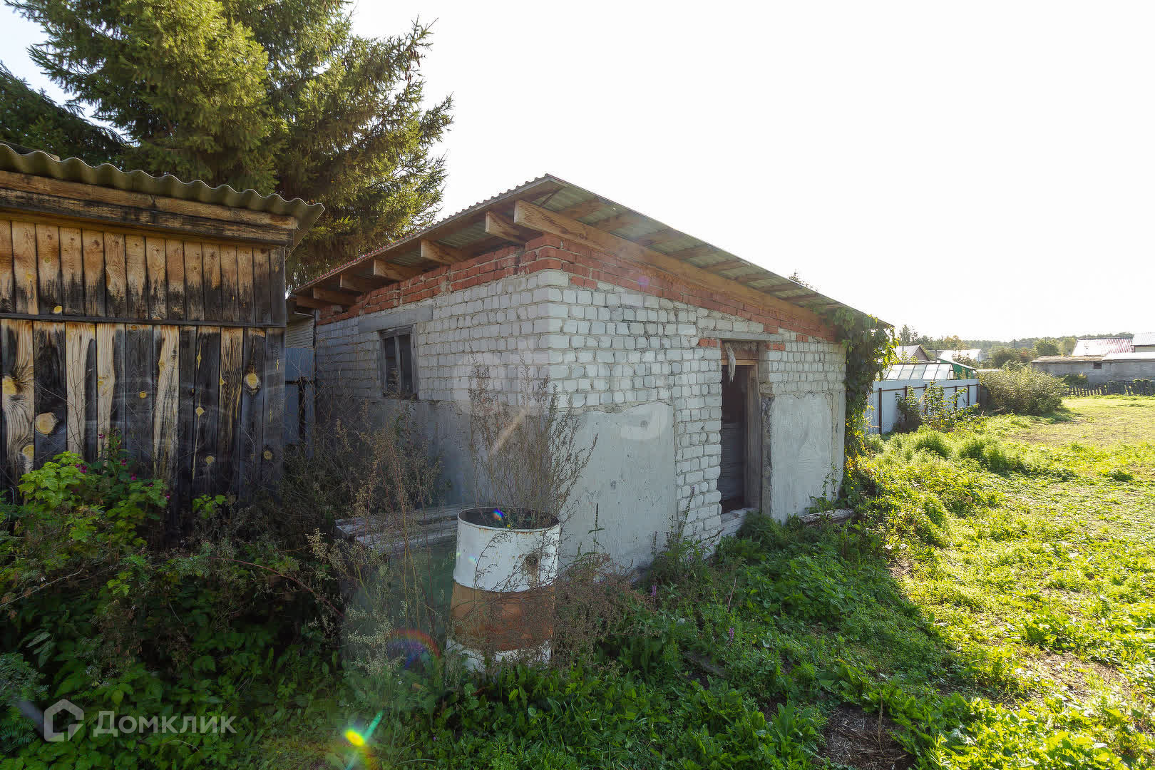 Большой хозяйский участок с плодородной удобренной землей. На участке хоз. постройки — два сарая и старая баня.