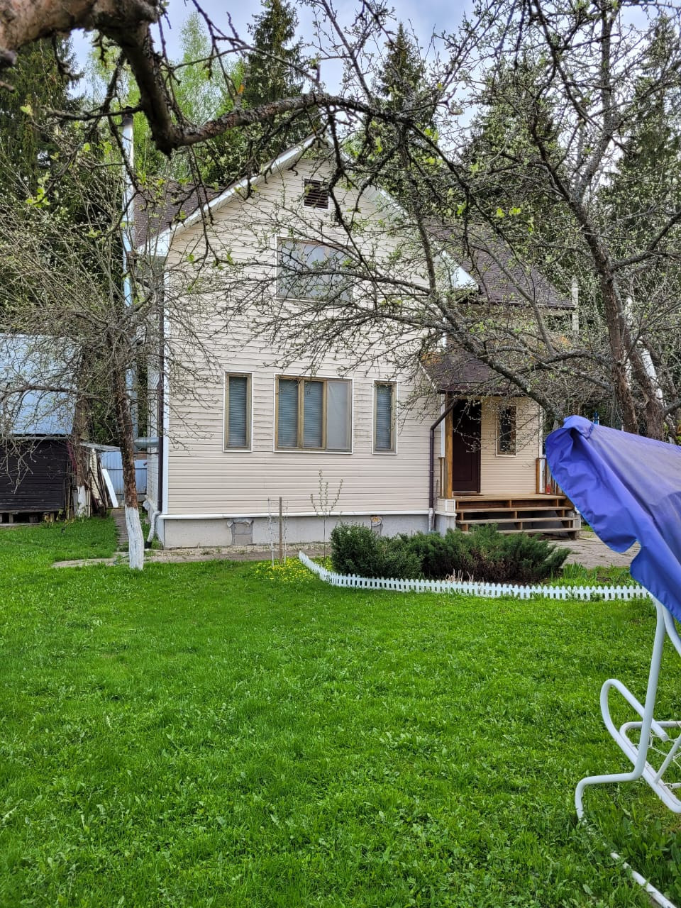 На участке есть плодовые деревья , кустарники и оборудованные грядки.