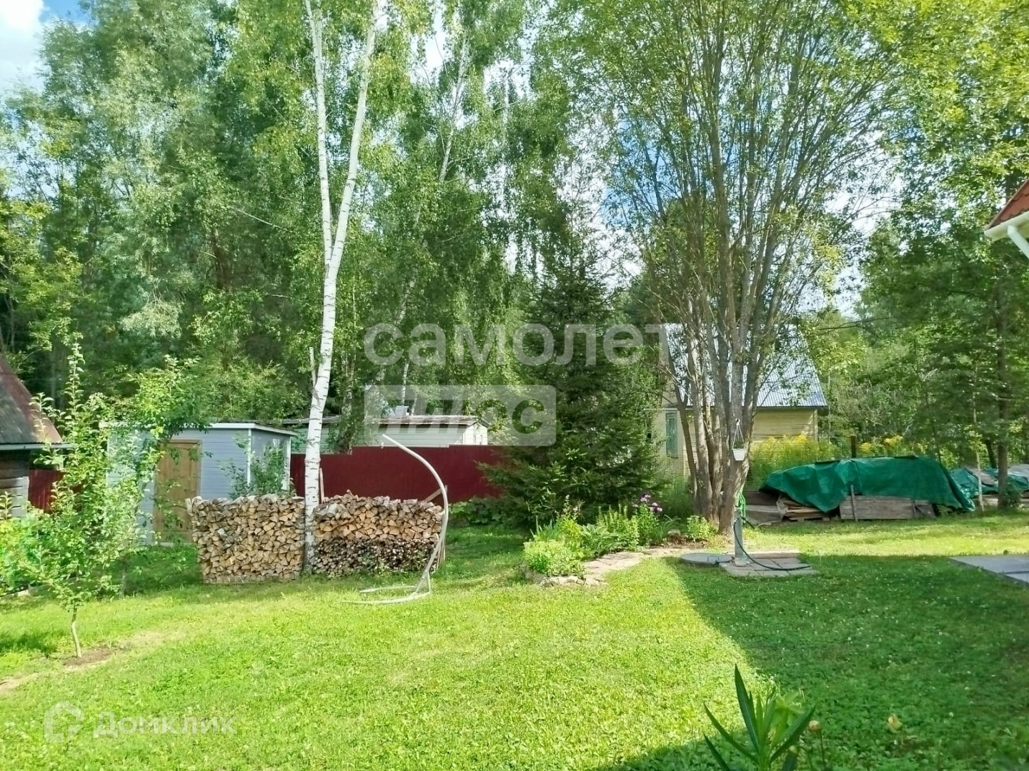 На участке высажены плодовые и декоративные деревья и кустарники. Это отличное место отдыха от суеты города.