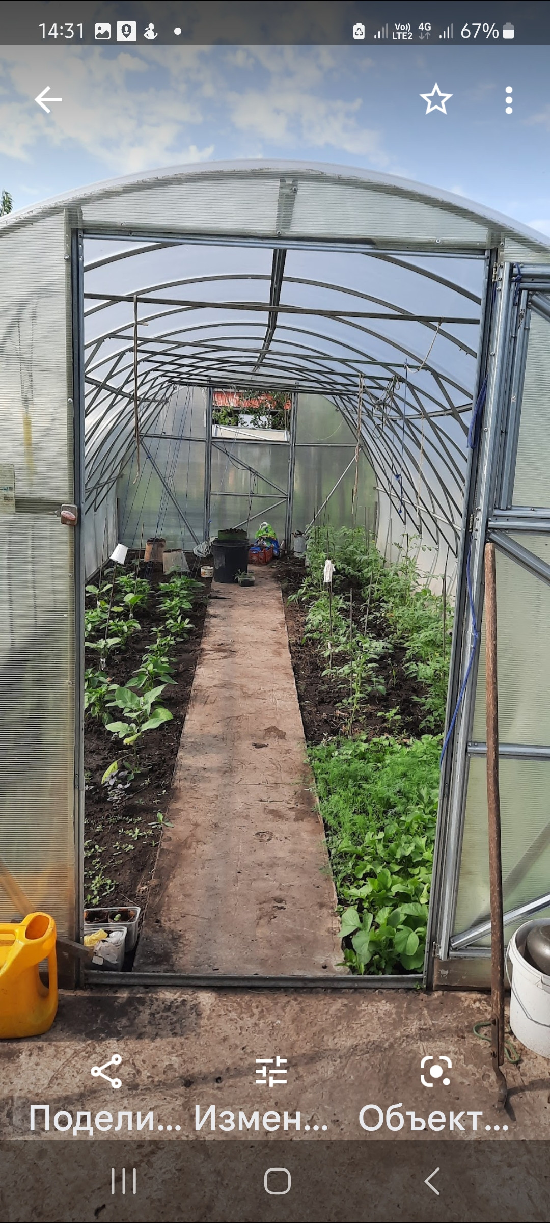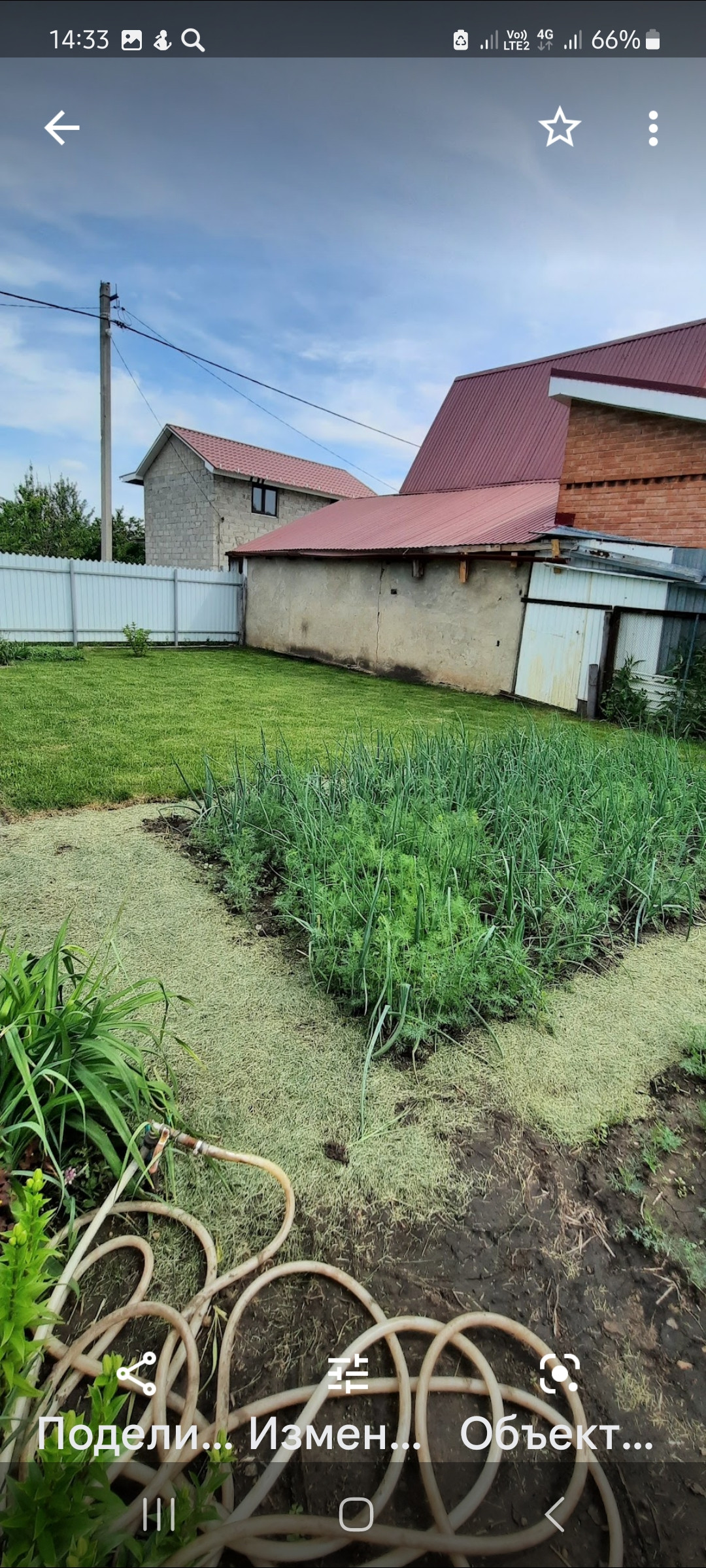 На участке растут хорошие сорта яблонь, вишни, столовые сорта винограда. Ухоженный газон. Теплица 3х8.