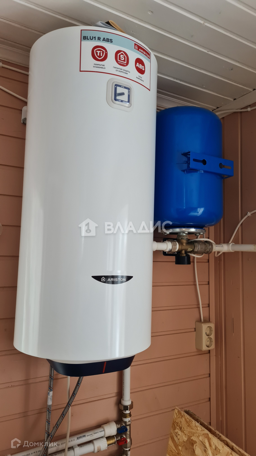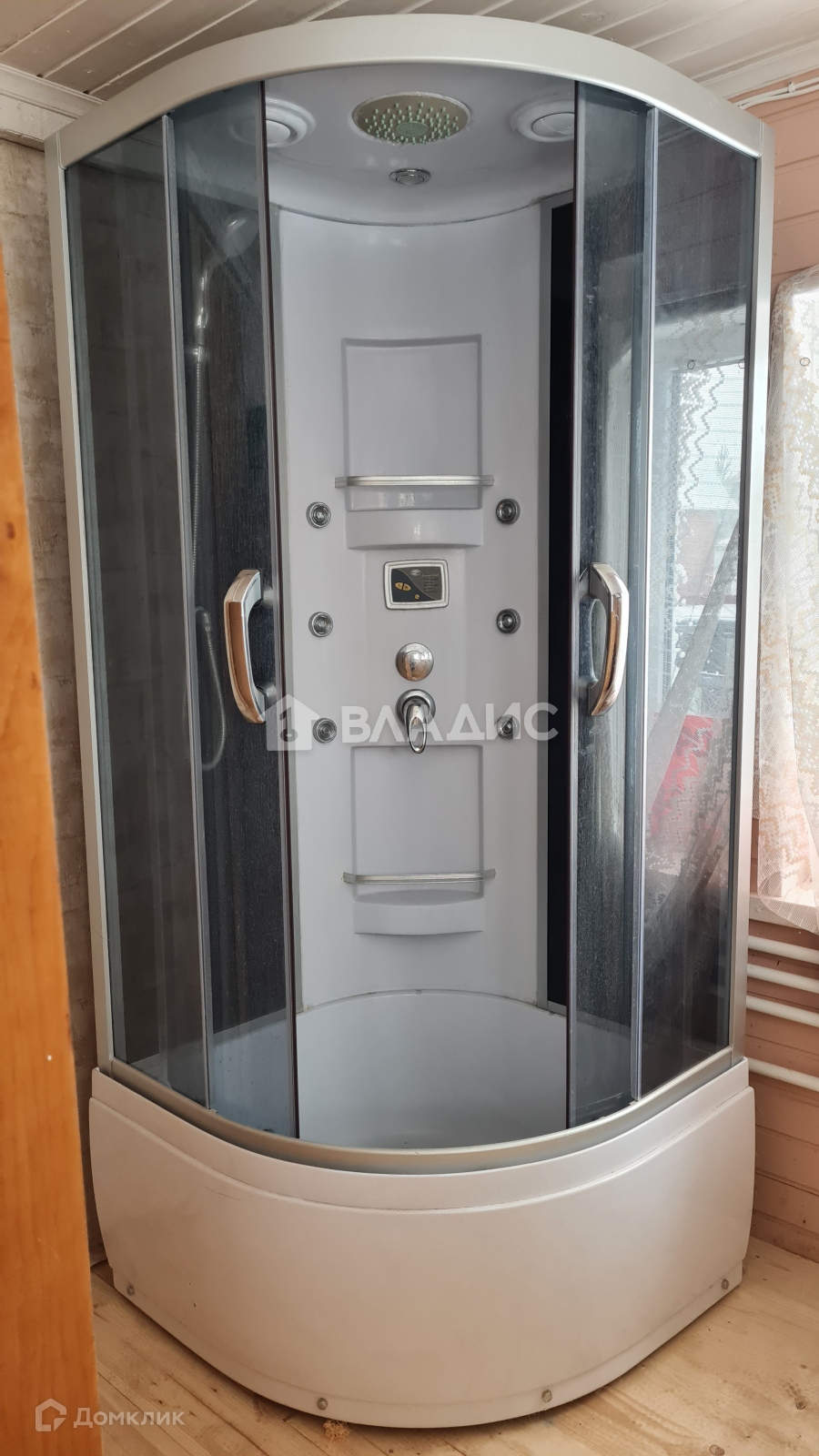 Вода из скважины заведена в дом, также имеется современная душевая кабина, водонагреватель "Ariston".