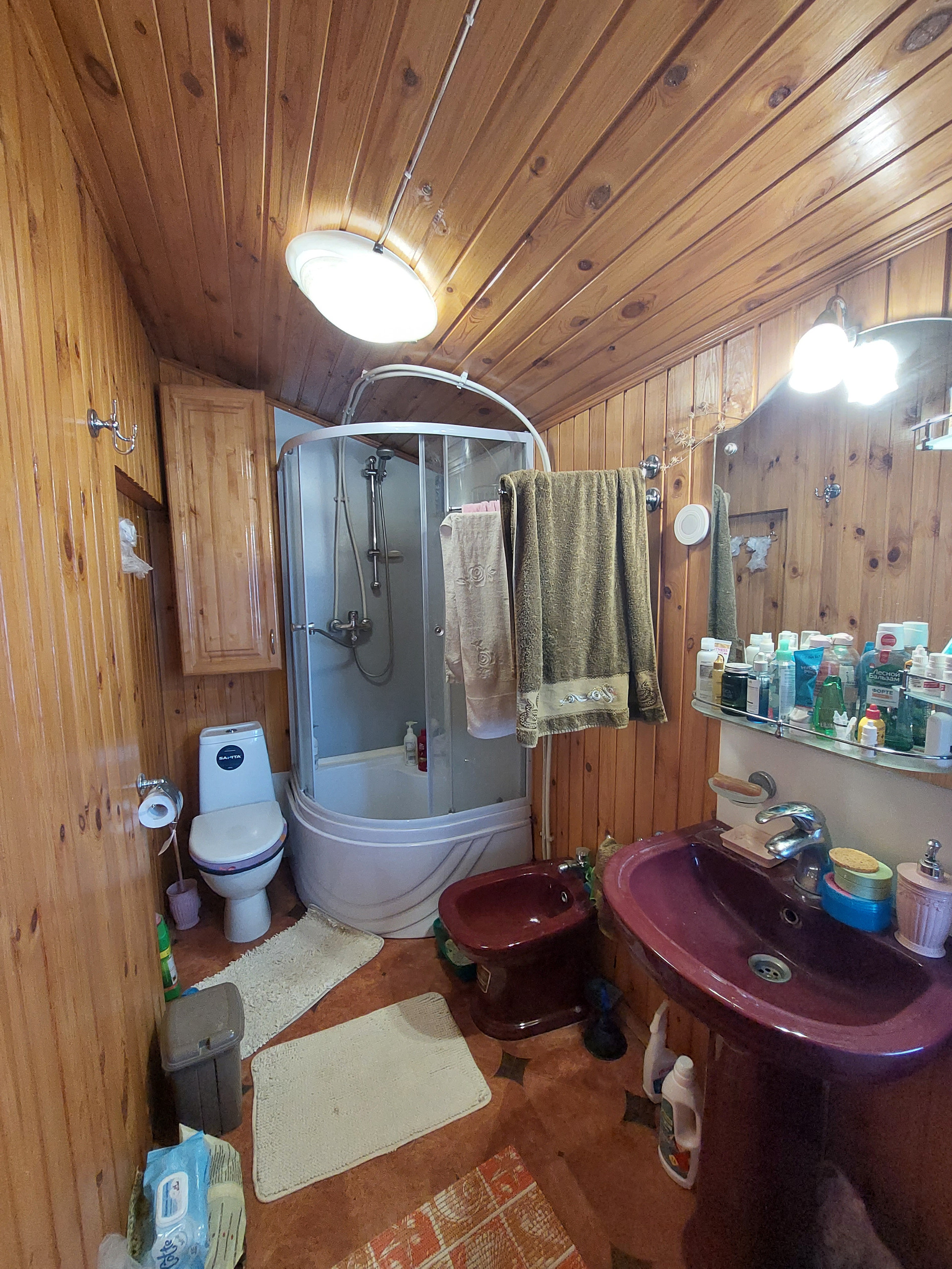 С домом продается замечательная  русская баня. Баня  построена из бруса лиственницы размером 150*150 мм. Баня оборудована парилкой и купелью.