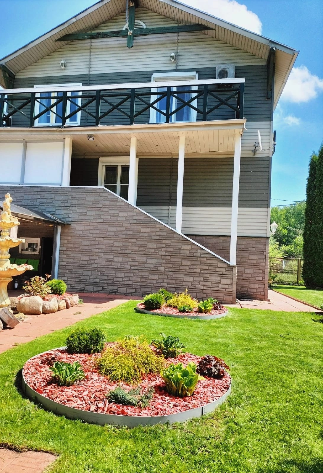 Сам земельный участок  благоустроен. Утопает в цветах,  в плодовых кустарниках и имеет зоны отдыха.