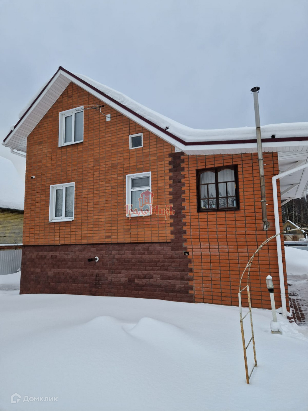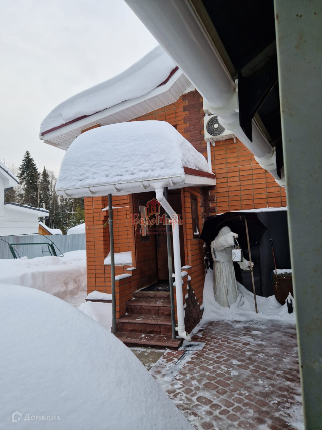 Дом построен из кирпича. Ширина стен 50 см.