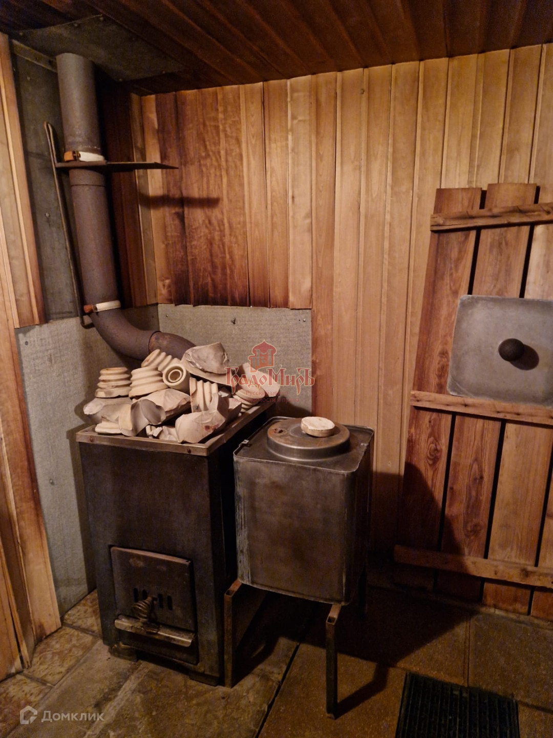 Дровяная баня в доме с отдельным выходом на улицу.