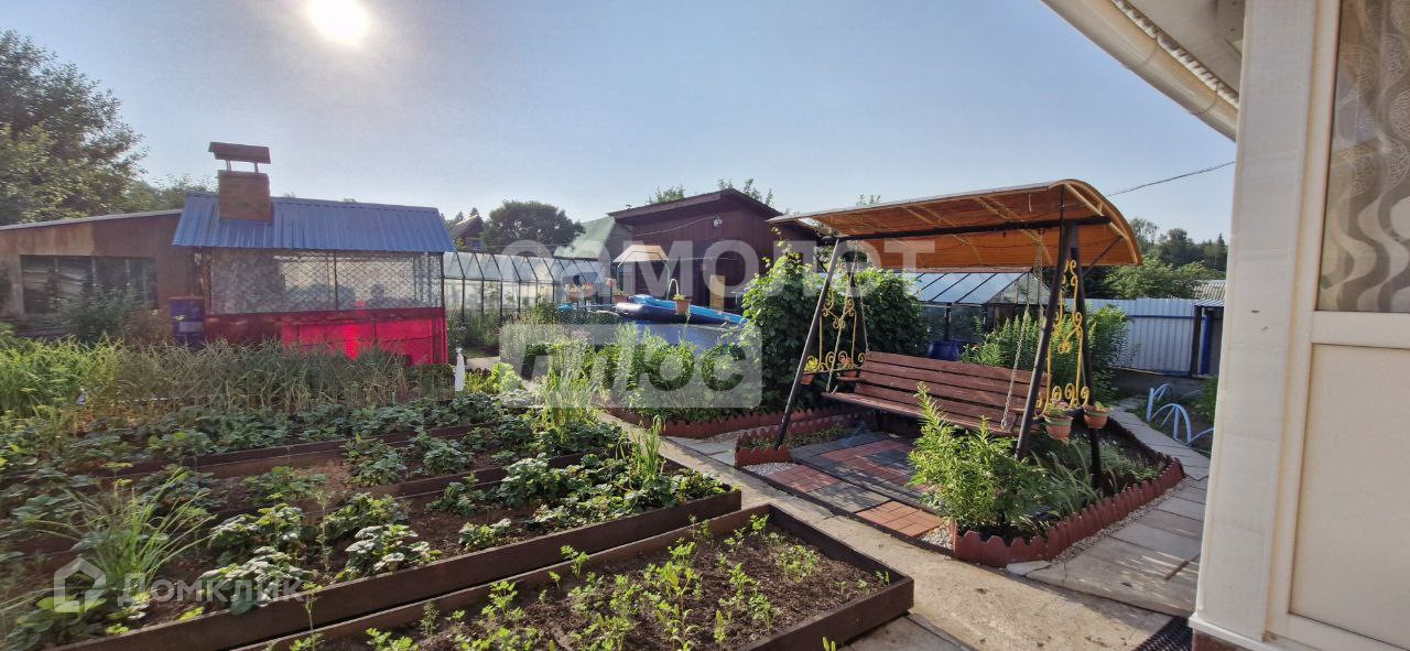 На территории имеется хорошая баня из цельного бревна, 2 теплицы, дровяник с большим запасом дров, курятник, душевая, летняя кухня, бассейн, садовые качели, декоративный мини-прудик.