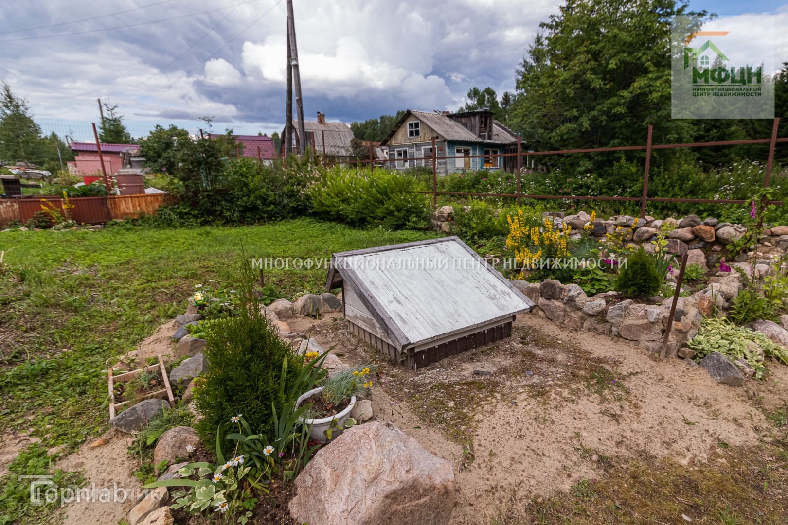 На участке есть яблони, вишня, смородина, малина, многолетние цветы и грядки. По желанию можно обустроить огород.