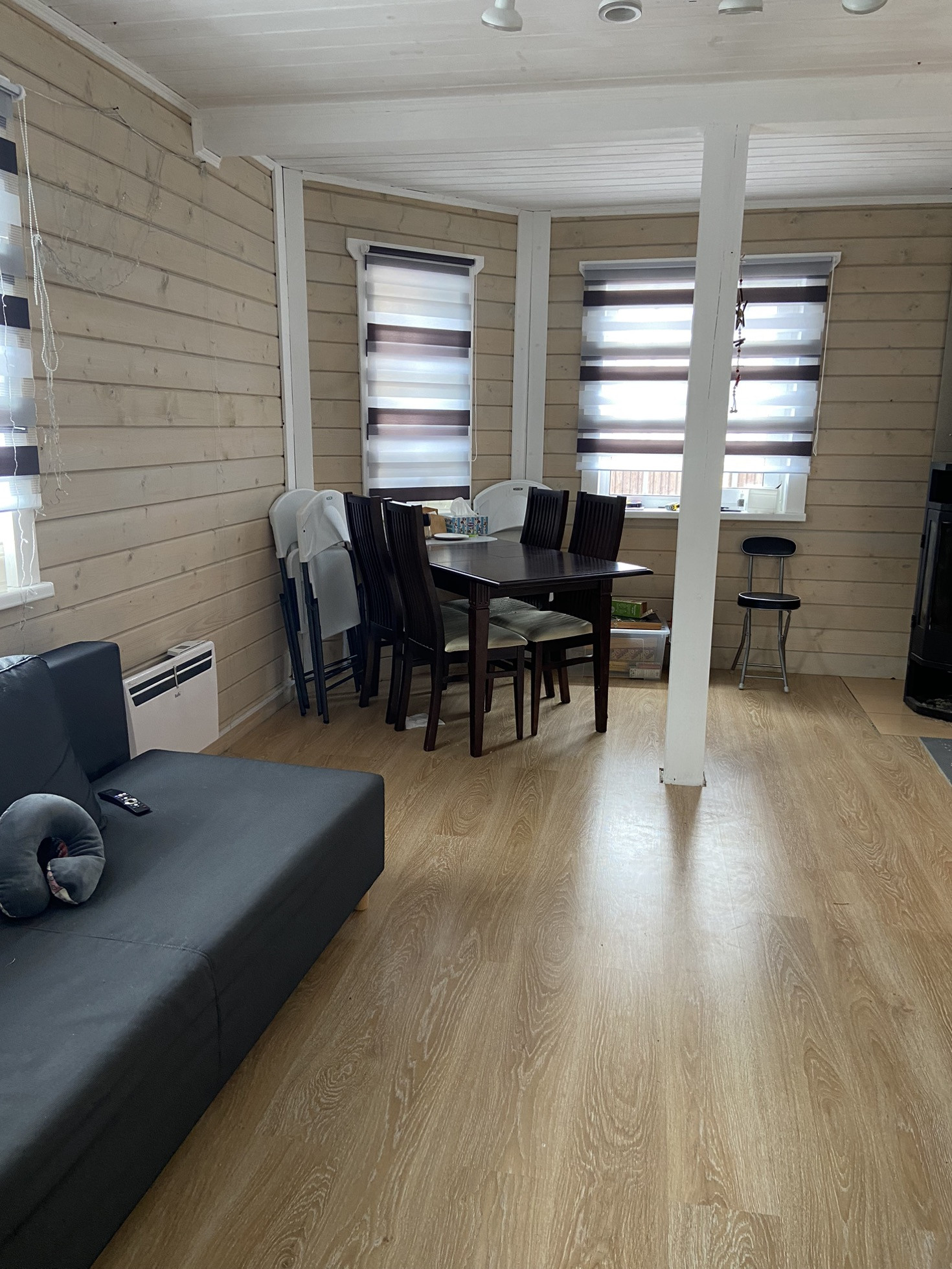 На первом этаже кухня-гостиная, с/у и гостевая комната, на 2 этаже 2 комнаты. Кухня остается.