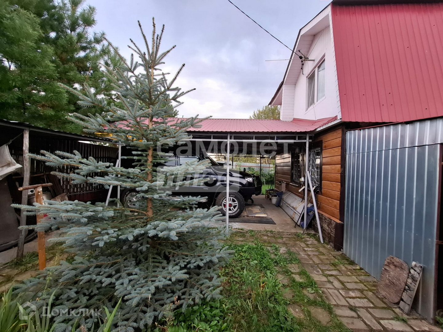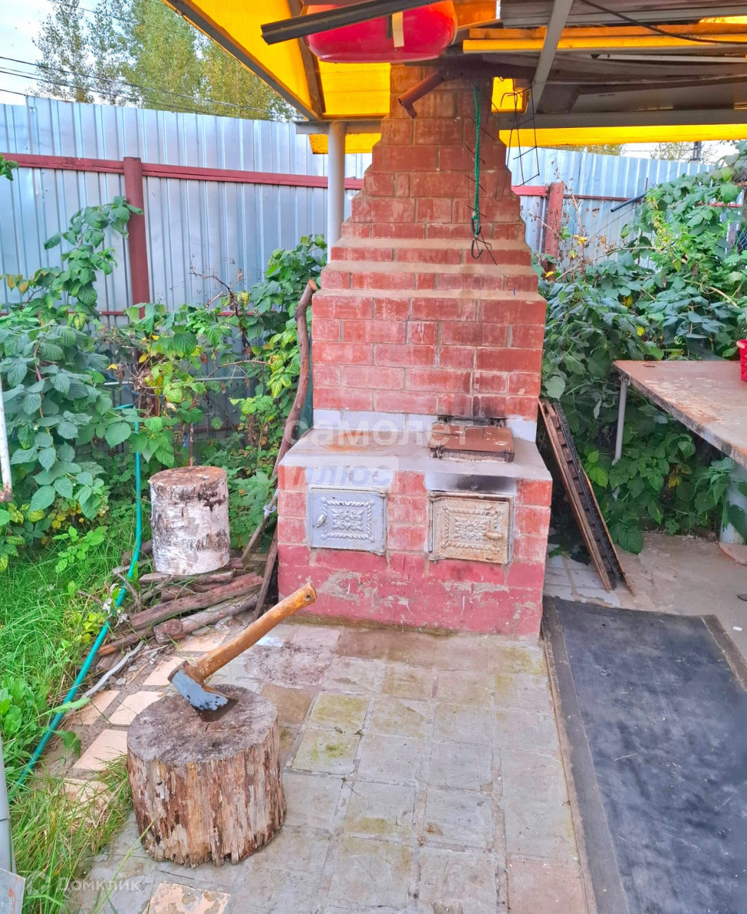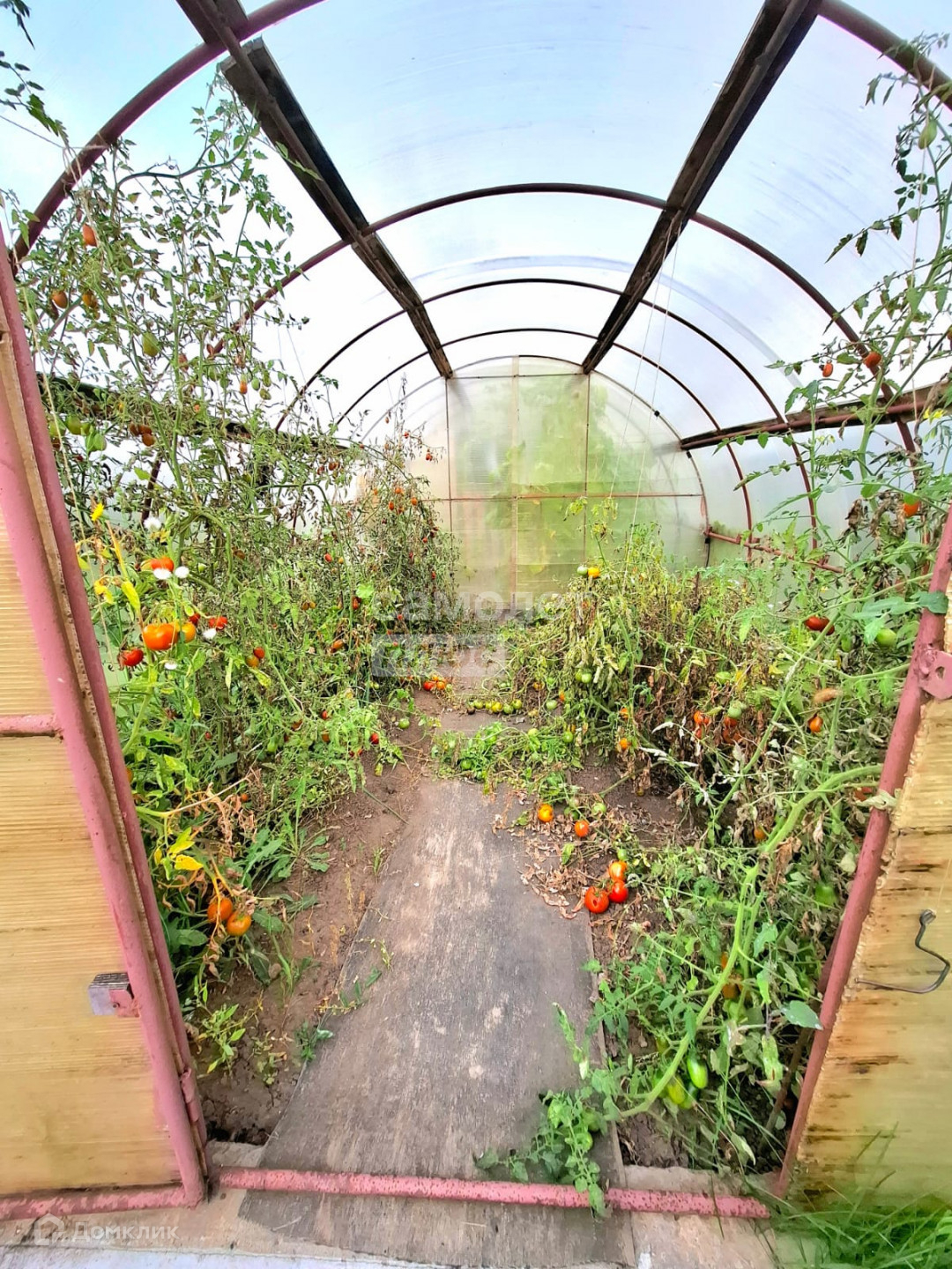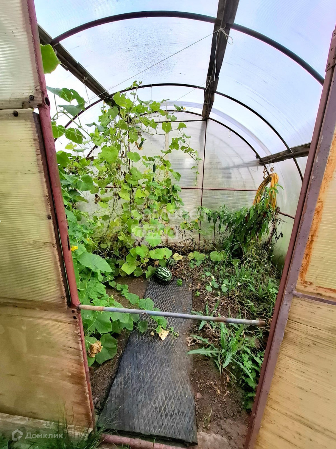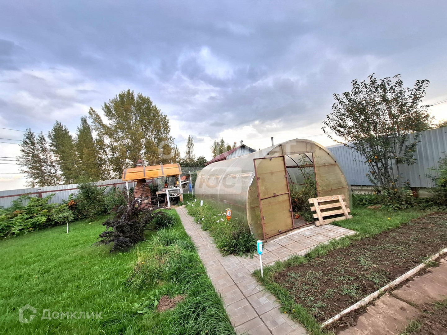 На участке 7.3 соток- стоит большая теплица, есть яблони, смородина, ёлки, туи, цветы. Двор ухоженный в брусчатке, есть мангальная зона.