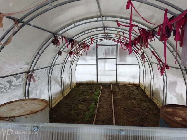 Участок крайний у леса, соседи с двух сторон. Огорожен сеткой рабицей. На участке крепкая теплица. Посажены кустарники смородины, крыжовника, есть земляника и клубника. Ежегодно сажали картофель.