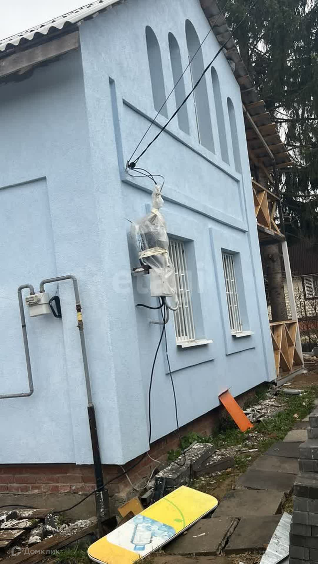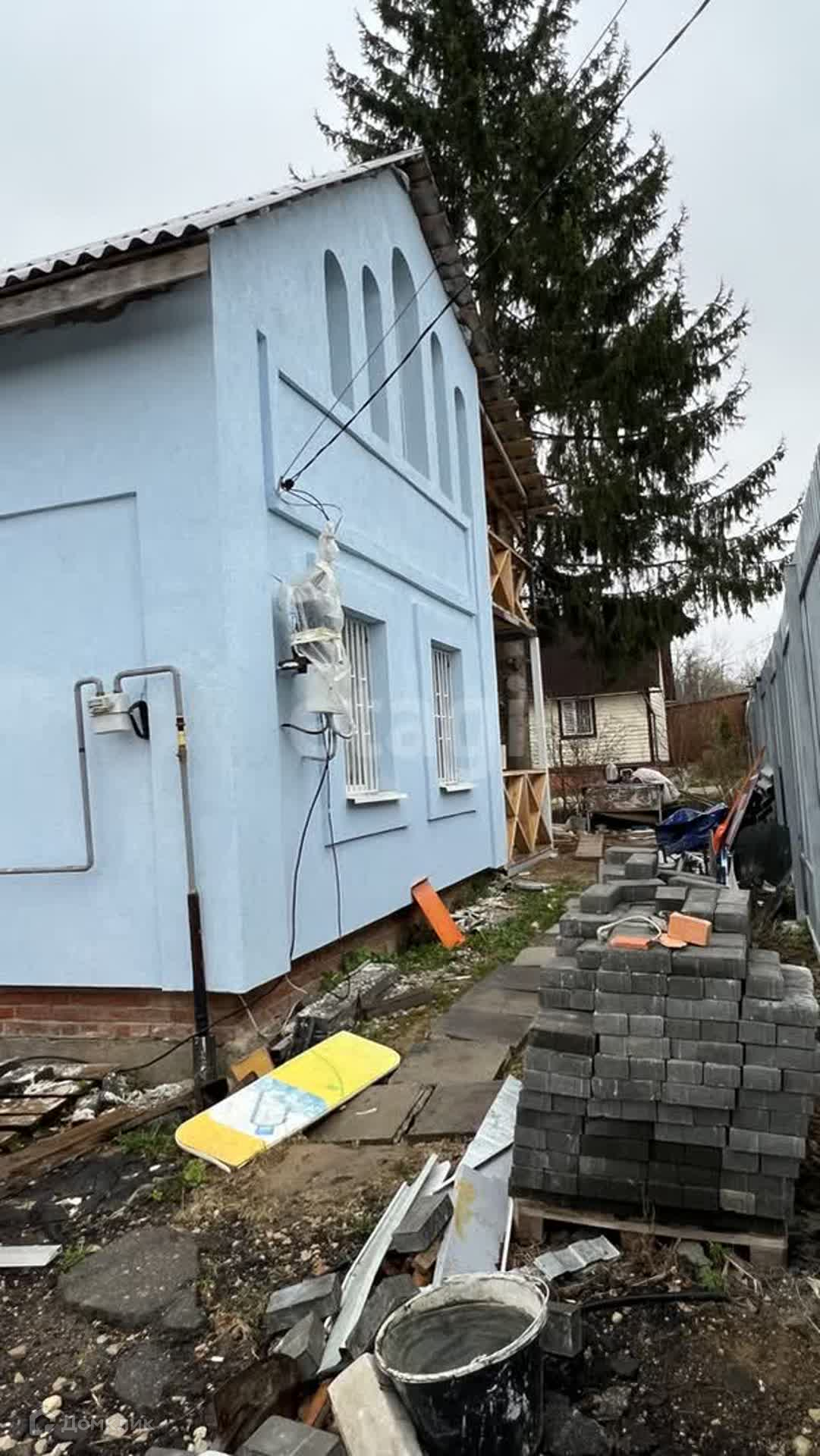 Дом построен из кирпича, утеплен минеральной ватой, фасад отделан штукатуркой, внутри отделка полностью завершена.