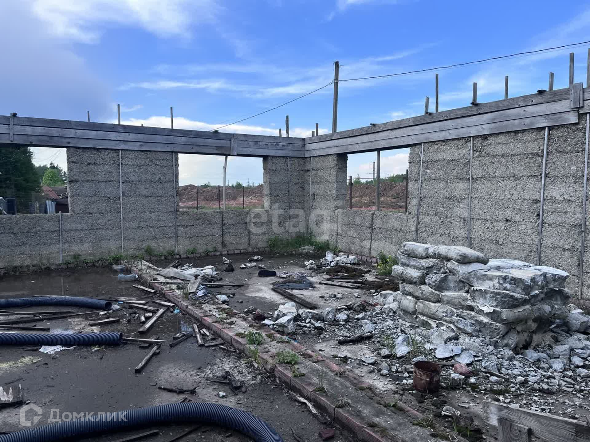 * недостроенный дом 9х9 под снос или придётся договариваться с соседом (нарушены границы);