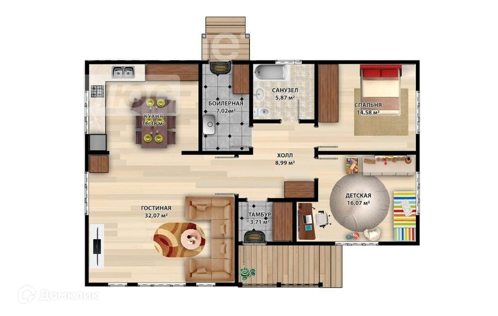 - При входе в дом предусмотрена веранда