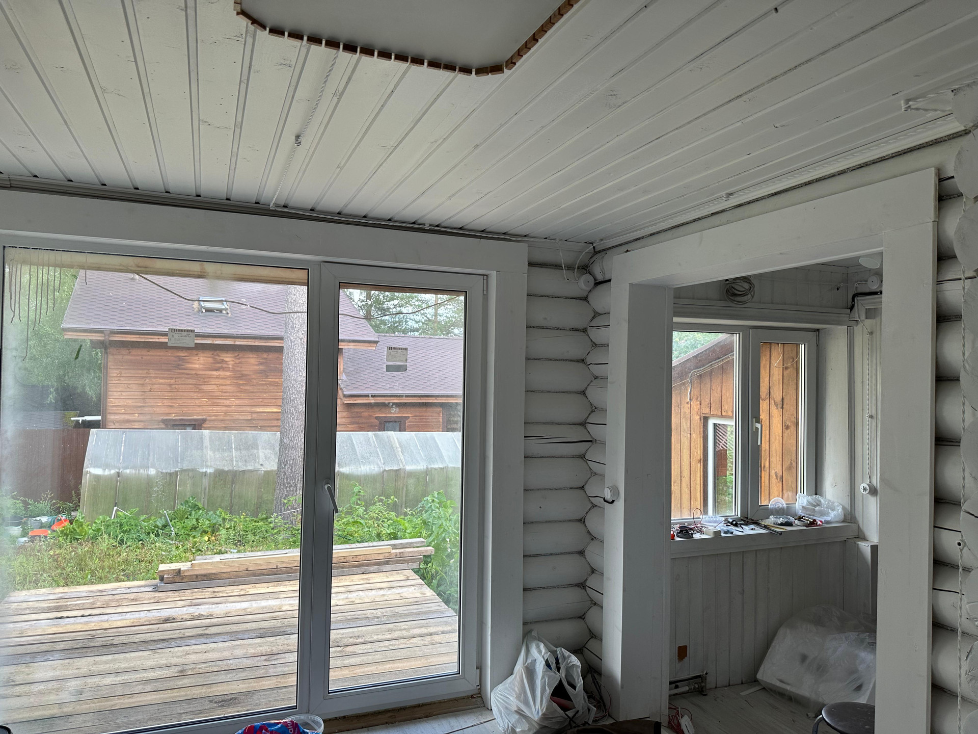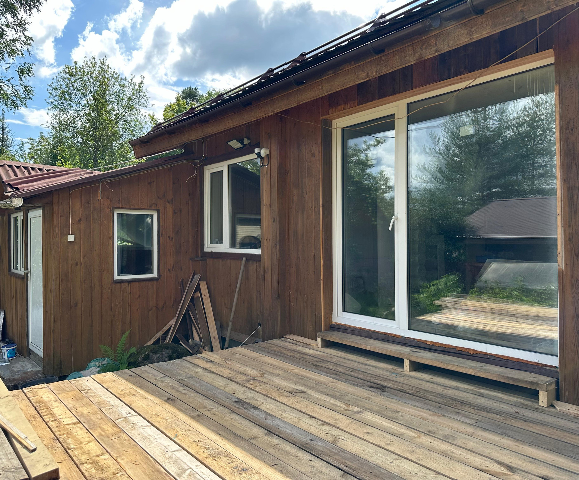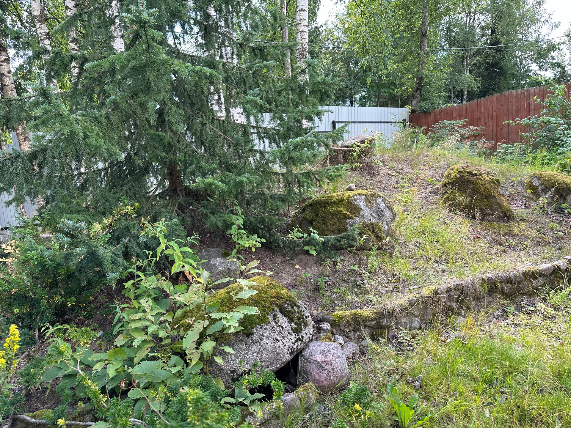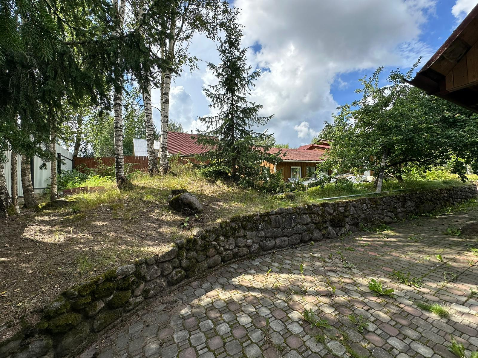 На участке растут плодовые дерья, яблони, вишня, крыжовник, черная смородина, клубника, а так же вековая сосна и берёзы. В парнике раскинули свои ветви помидоры, огурцы и болгарский перец.