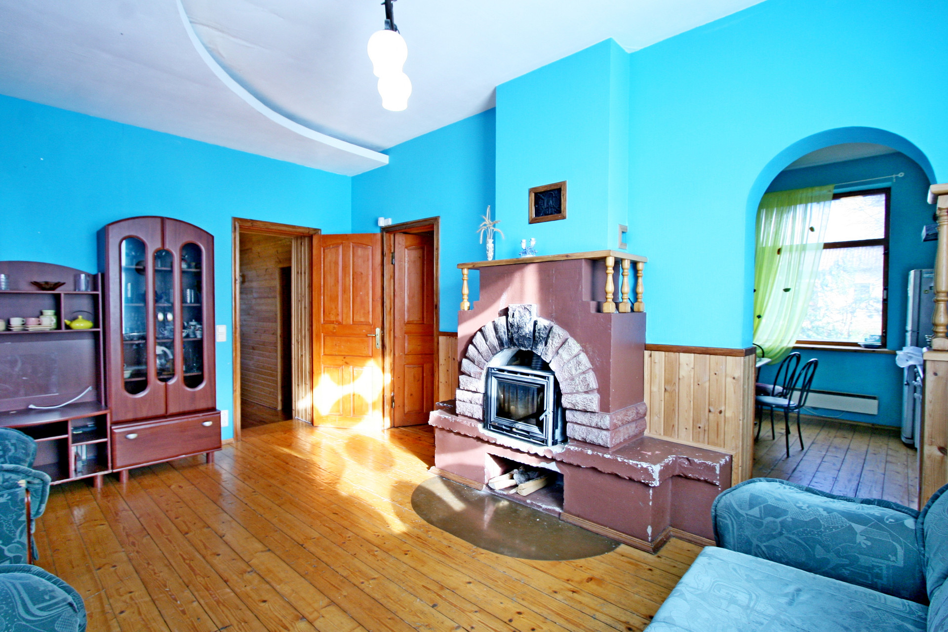 2 этаж: - гостиная с камином, кухня, 2 спальни, подсобное помещение.