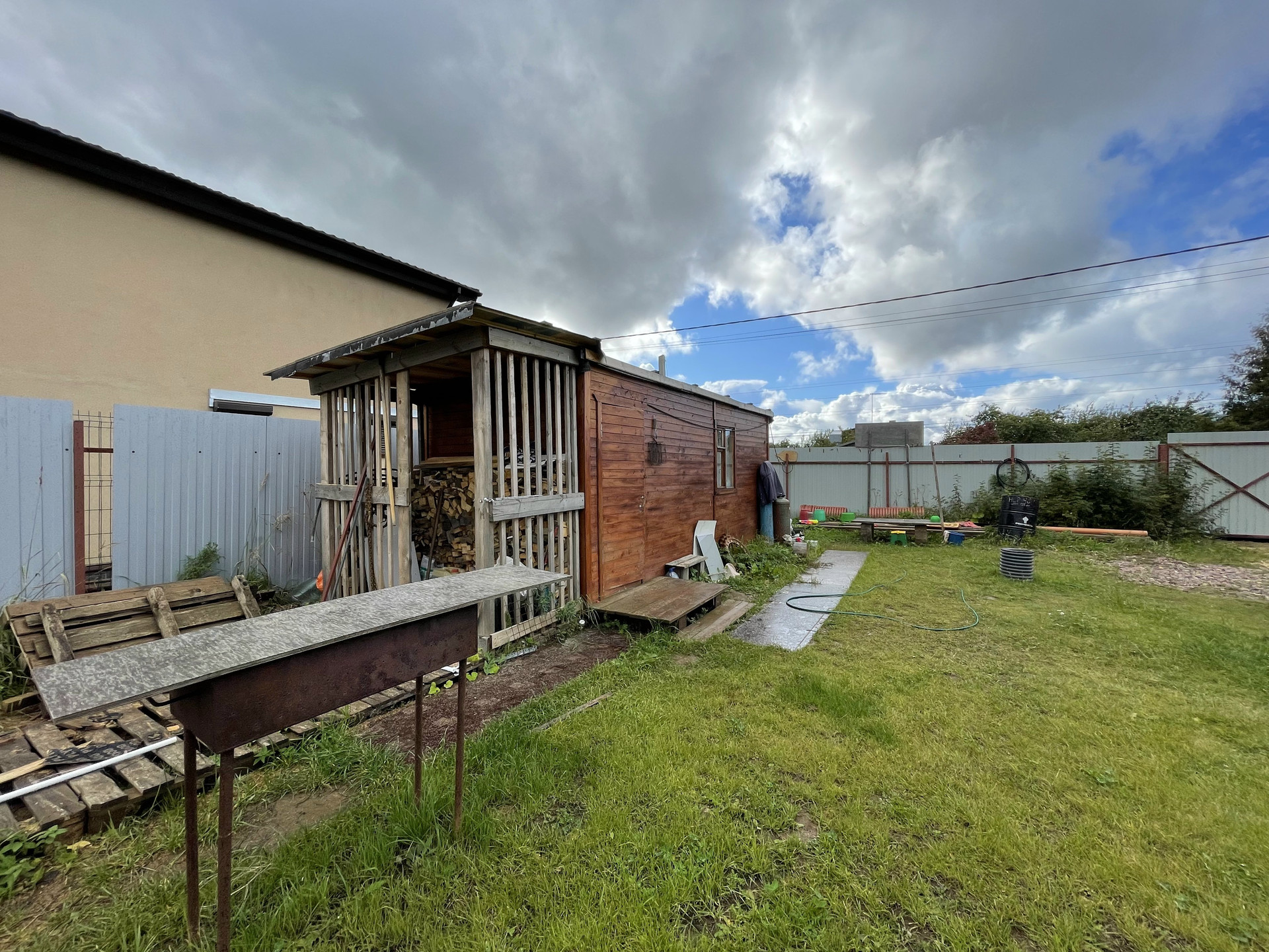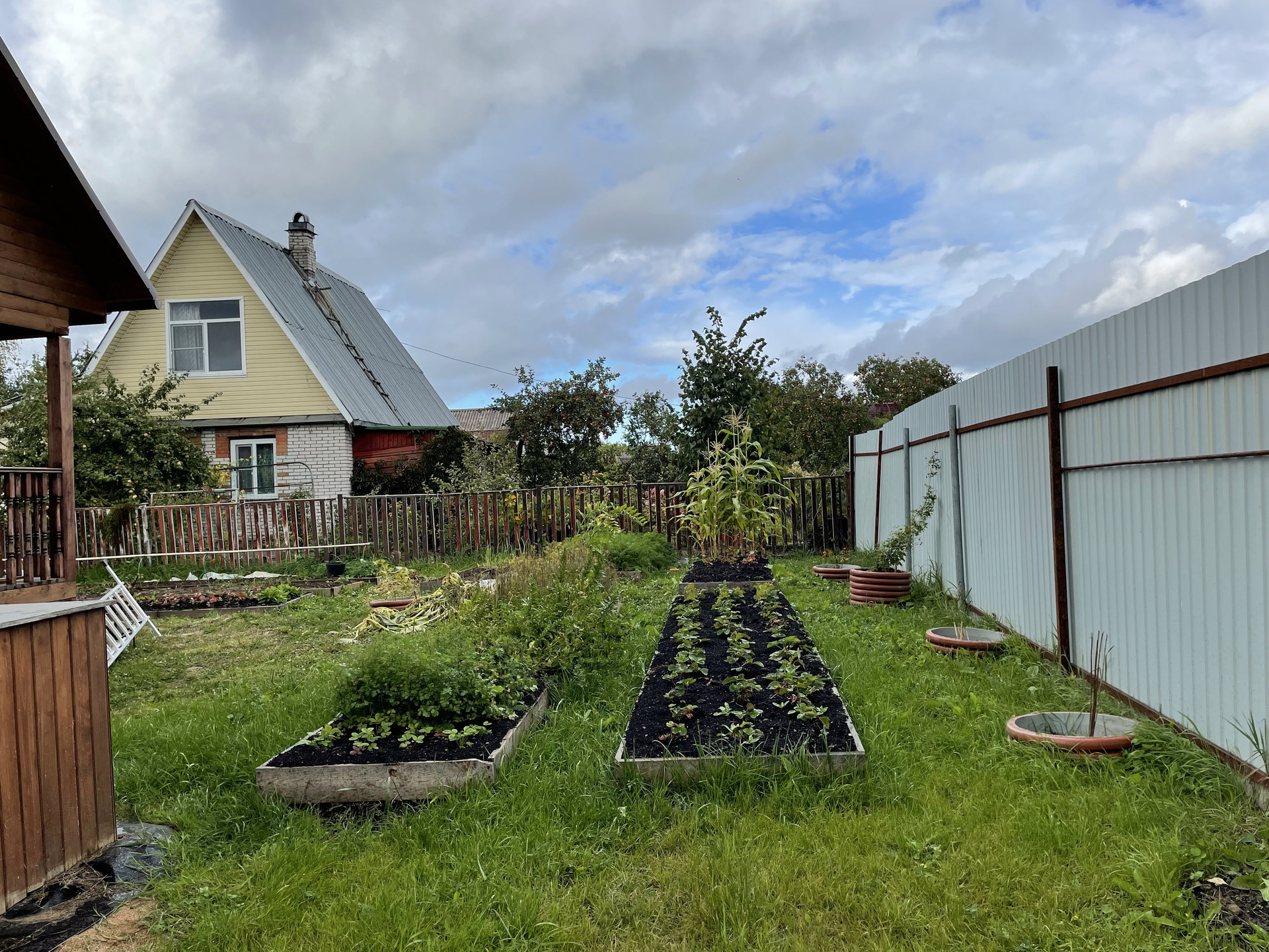 Участок 8 соток огорожен по периметру. На участке имеются грядки и яблони, установлен вагончик (мастерская) 15 кв.м, обшитый внутри и снаружи.