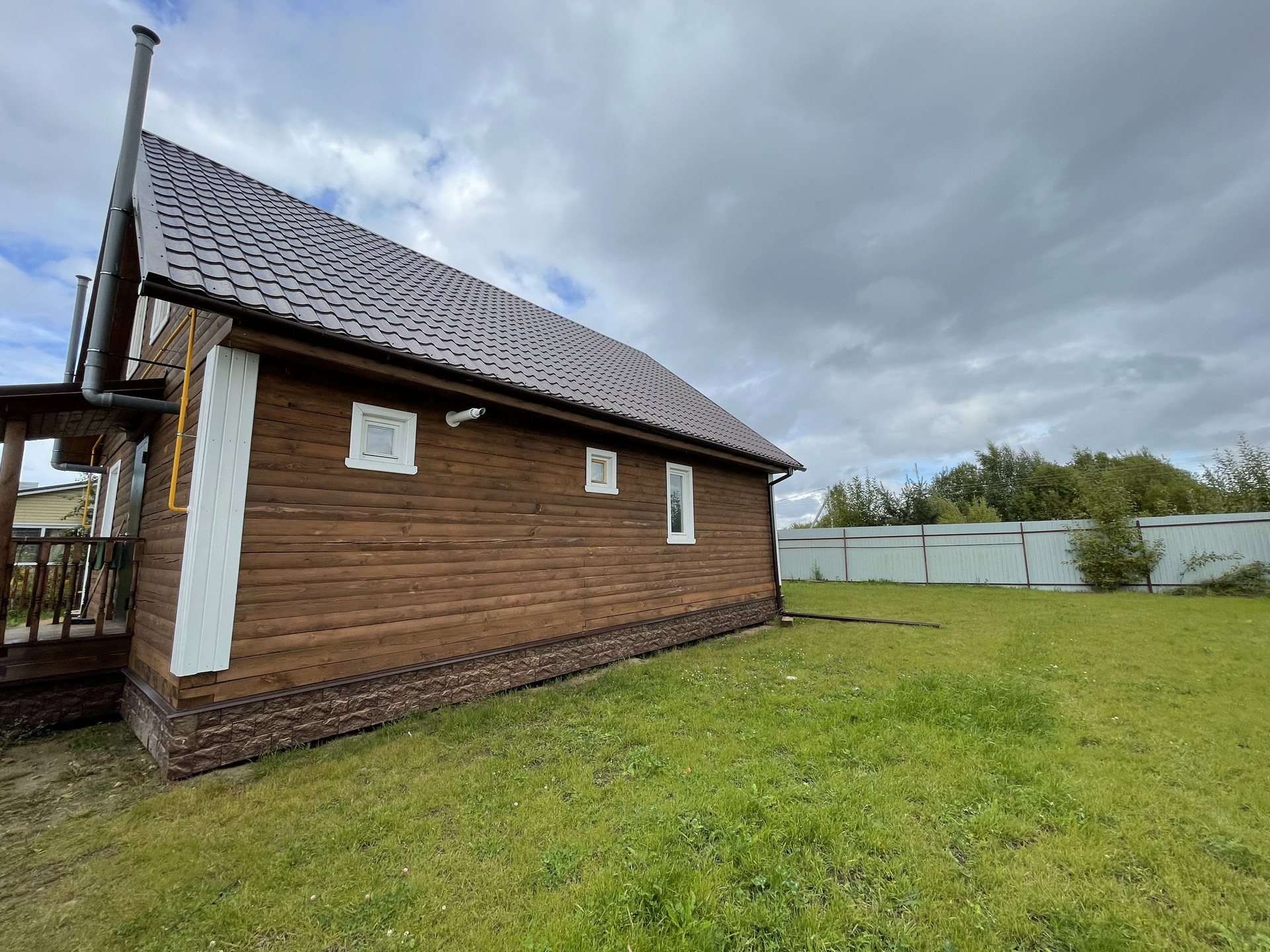 Фундамент - бетонные сваи, кровля - металлочерепица.