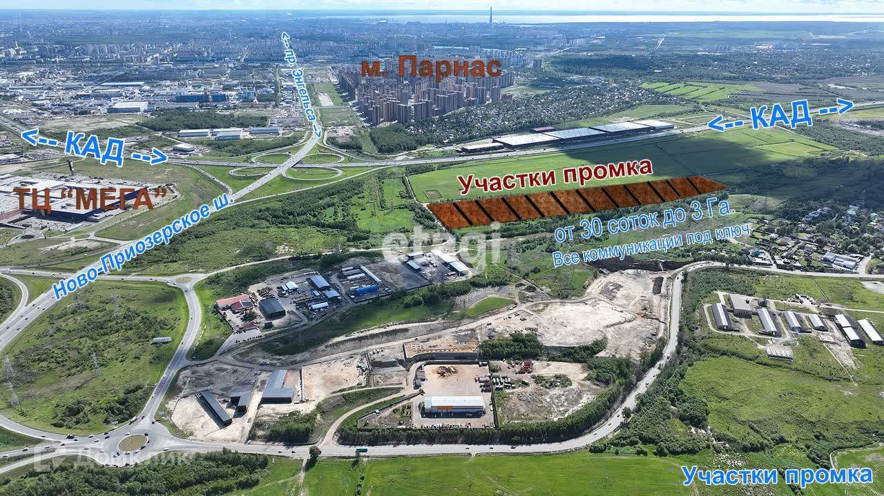 Хорошая транспортная доступность: метро Девяткино, Новоприозерское шоссе, 2 км от КАД., рядом с Мега Парнас, Мебельной фабрикой и Toyota Центр Парнас. Подъездные пути асфальт.