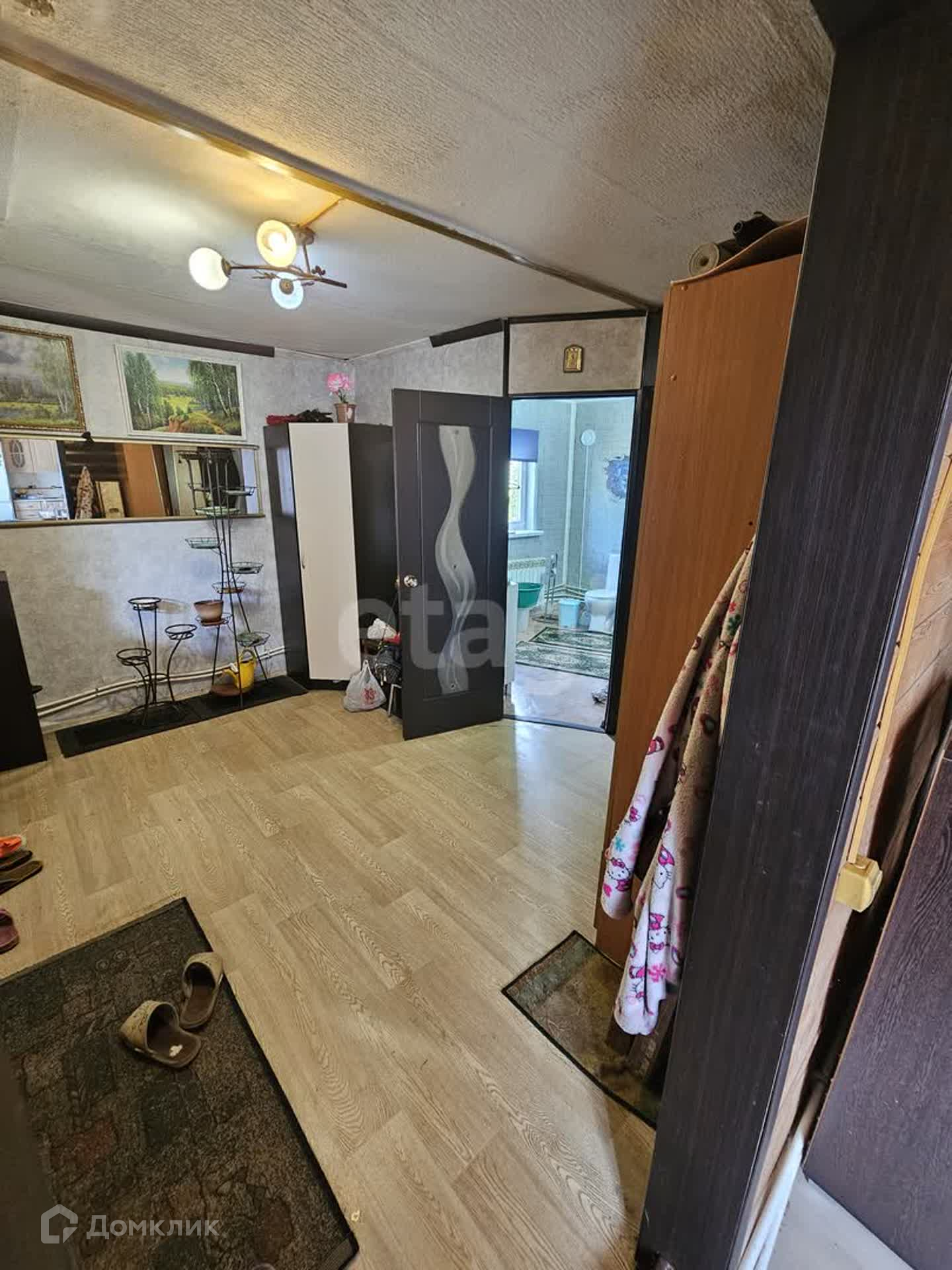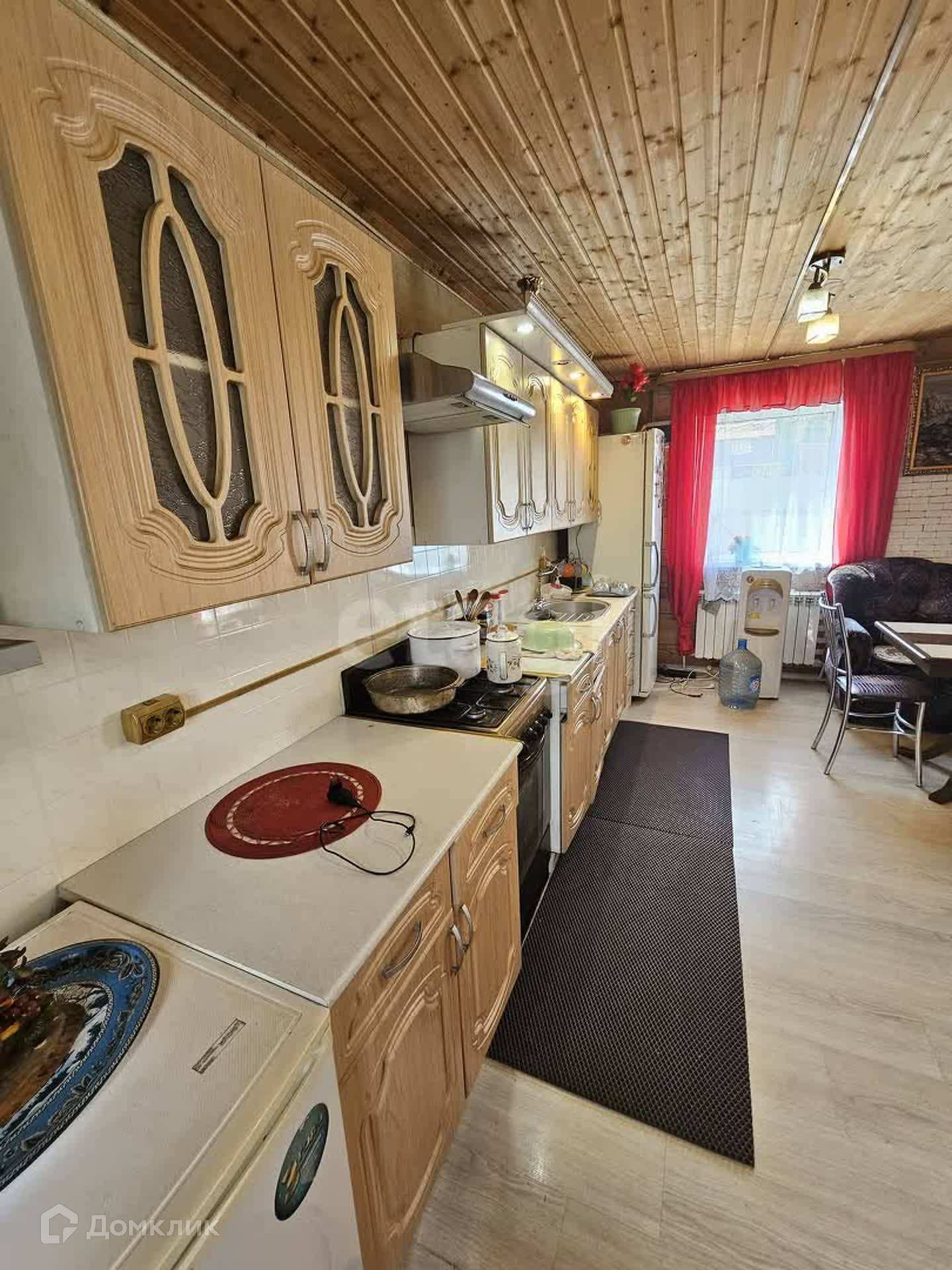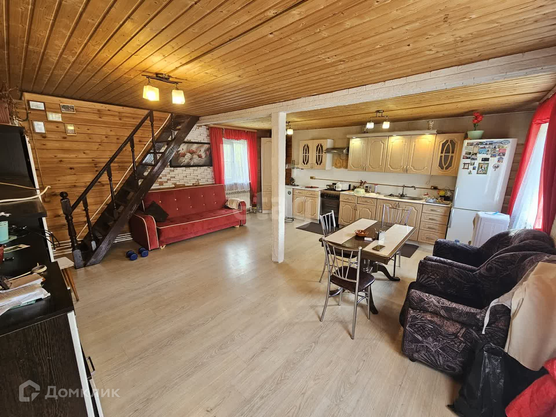 Внутри дом обшит деревянной вагонкой, окна - ПВХ!