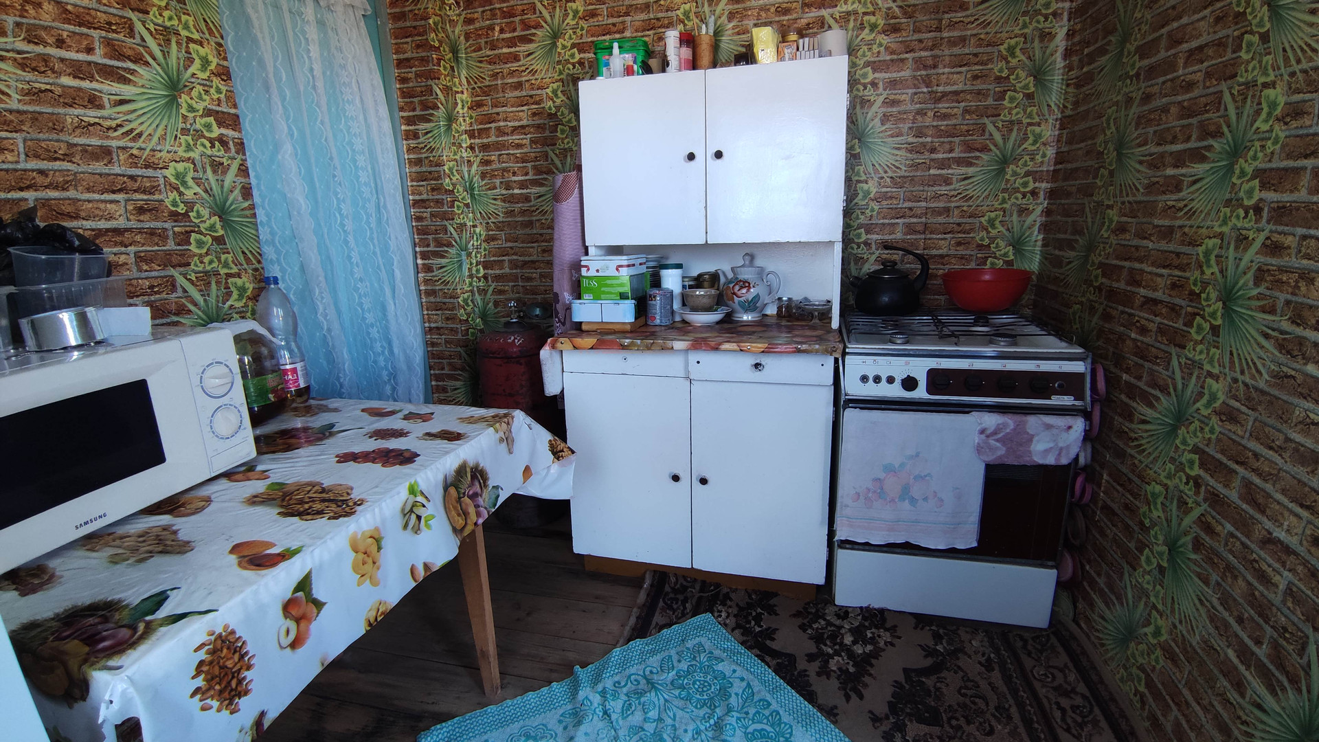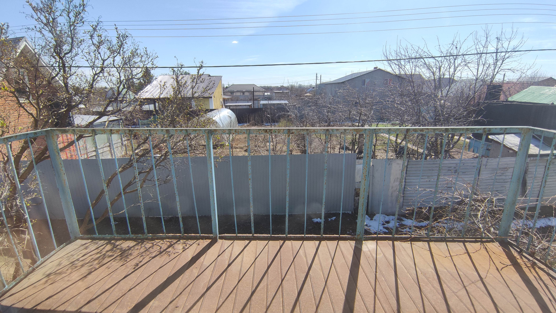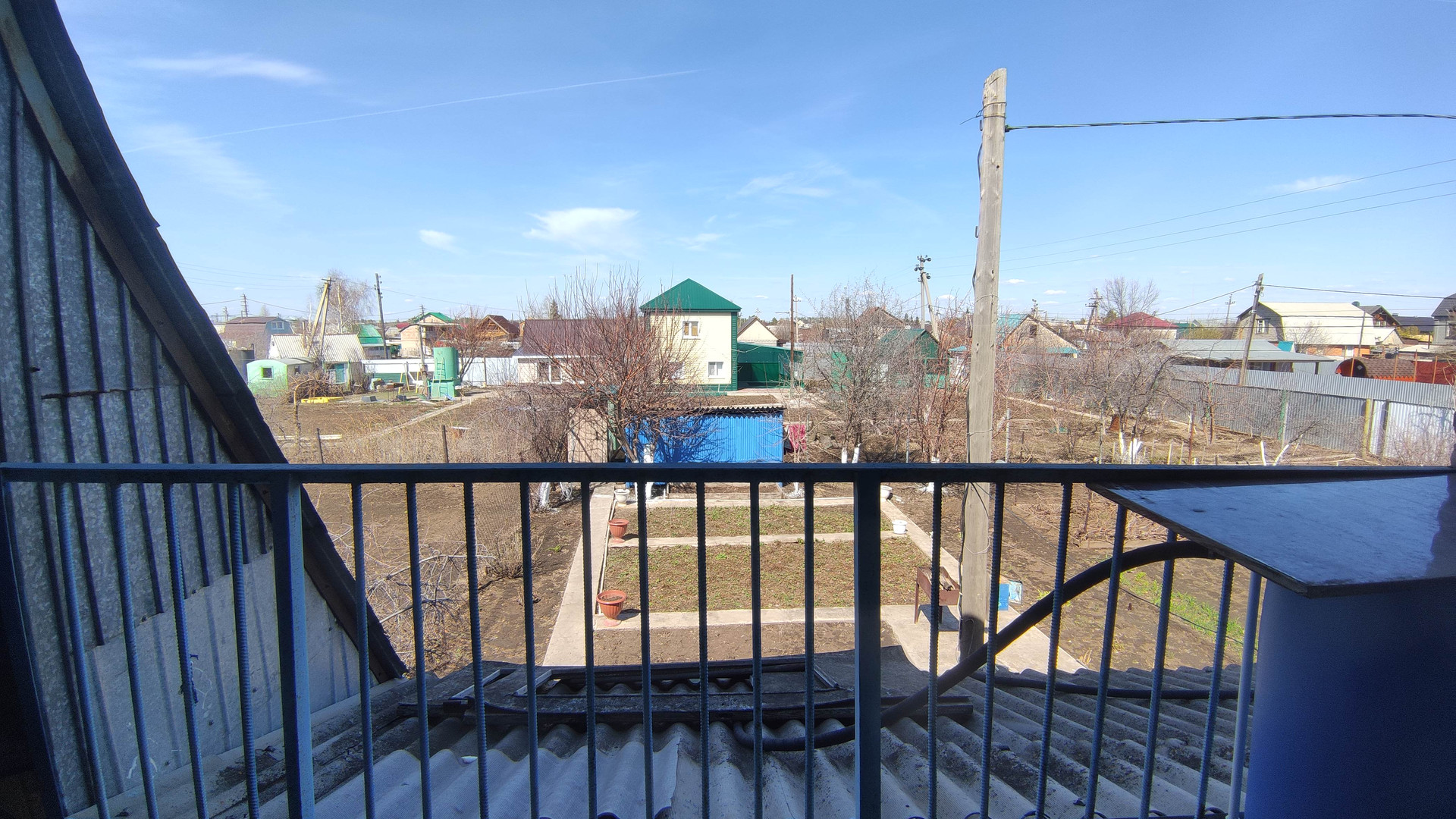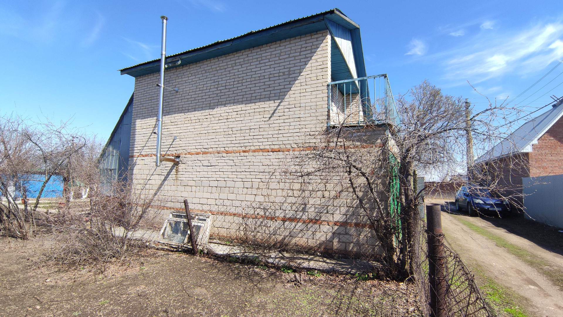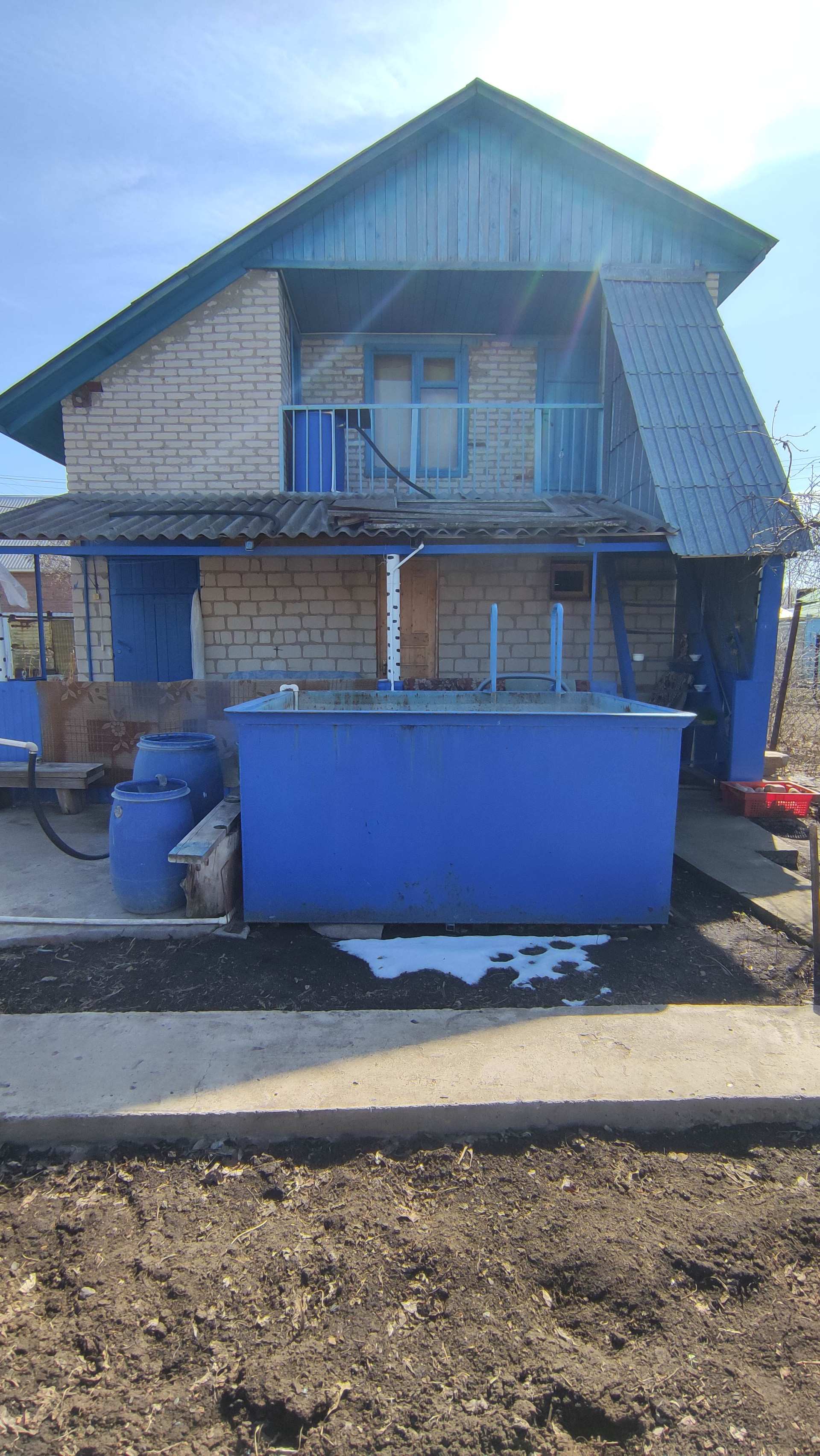 Дом двухэтажный. Вход на второй этаж отдельно по лестнице. Два балкона в разные стороны. Две комнаты и кухня. К дому подключено электричество, работает круглый год. По границе участка проложен газопровод, возможна врезка. Своя скважина. Туалет на улице.