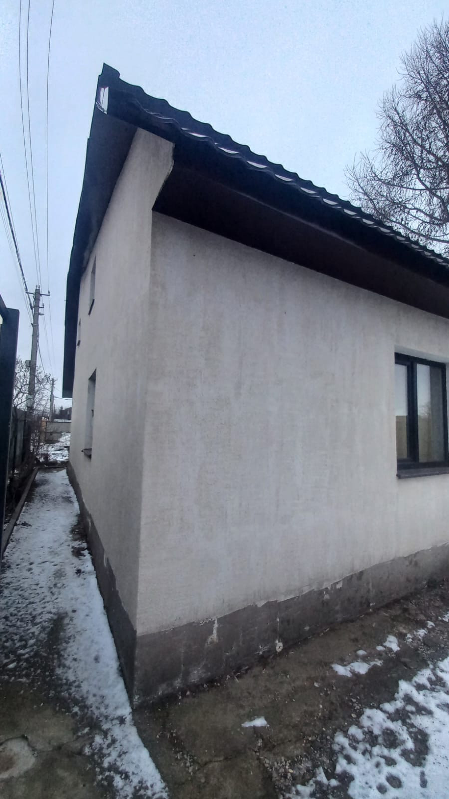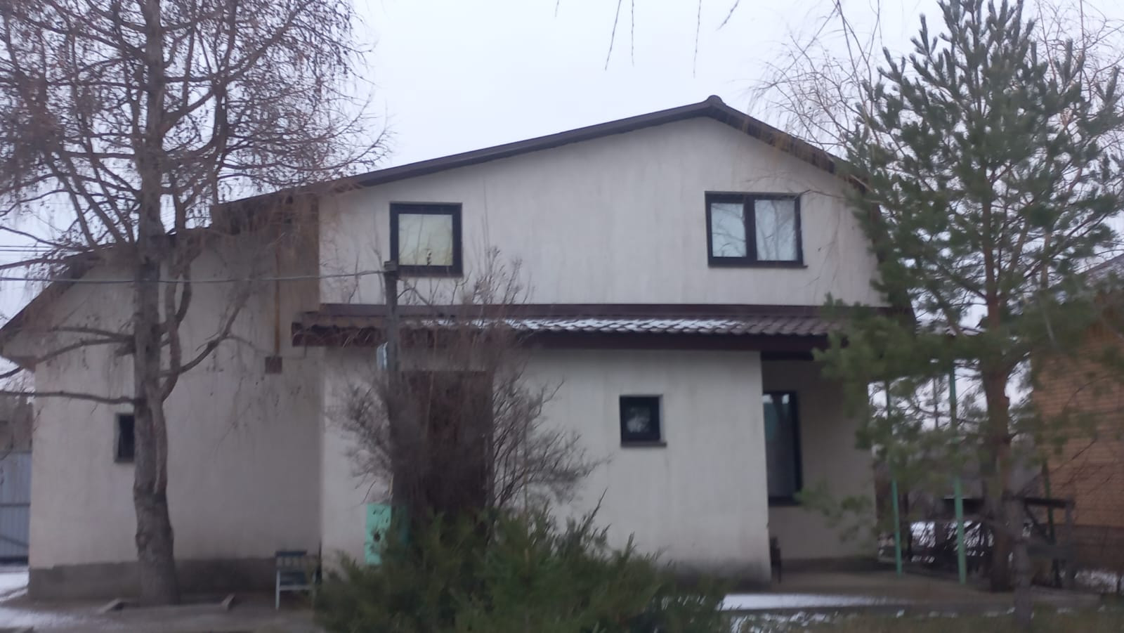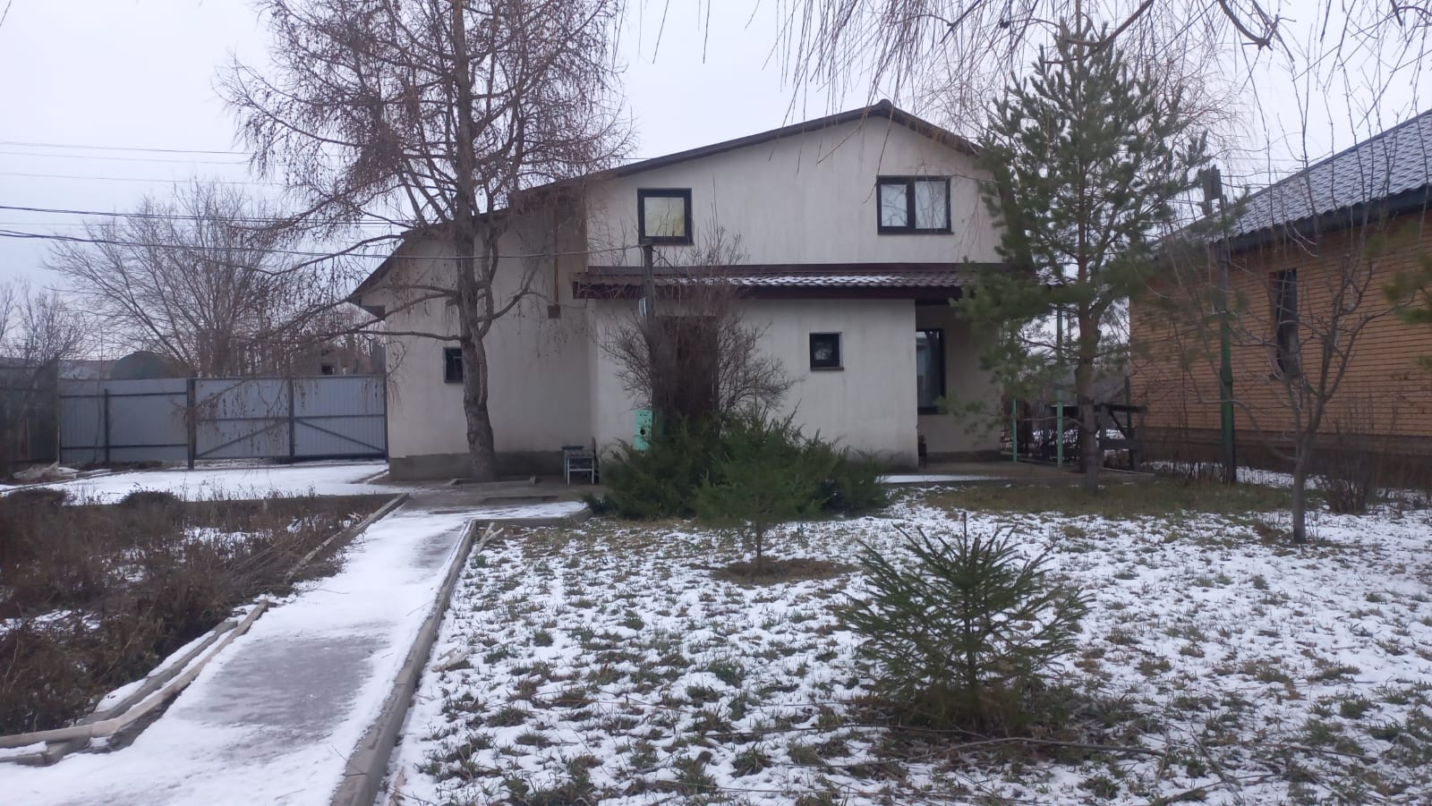 Дом построен из керамзитоблоков, пенопласт 10 мм, сетка, короед. Фундамент ленточный. Крыша утепленная пенопластом, металлочерепица. Окна пластиковые двойной стеклопакет, заведена вода, канализация, электричество 360 на ватт. Газ подведен к дому, но пока не заведен. Два въезда, площадка на 4 автомобиля.