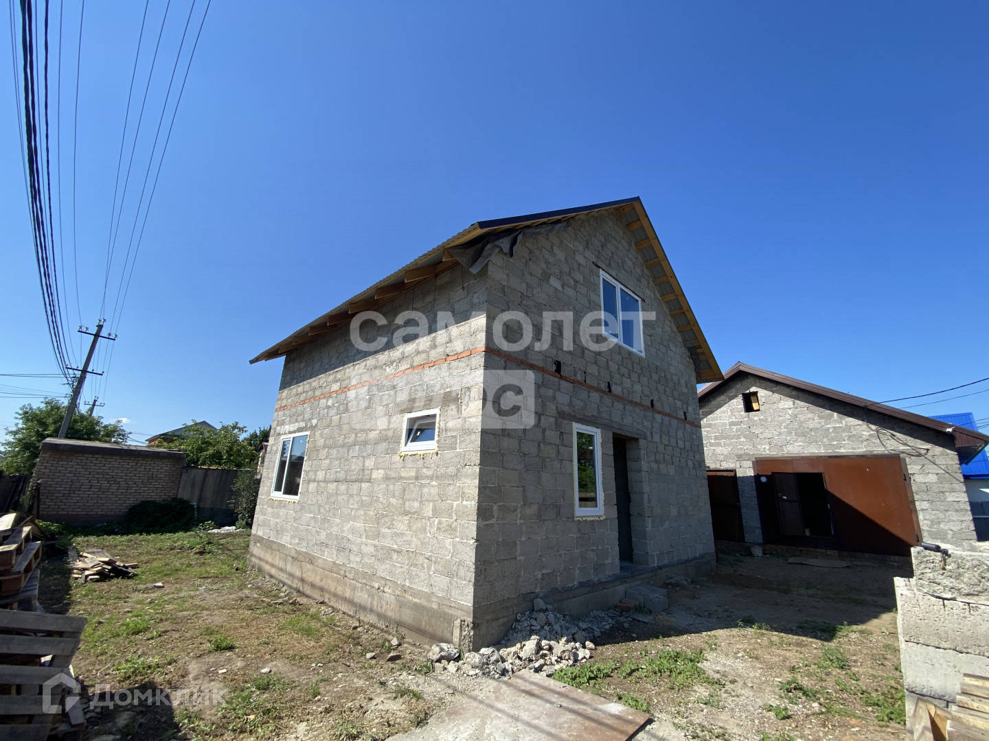 Строение  общей площадью состоящее из бани (  7,8х6,2  ), и гаража/летней кухни.Год постройки 2021, керамзитоблок, крыша - профлист, перекрытия деревянные, стены отштукатурены. Слив уже имеется.