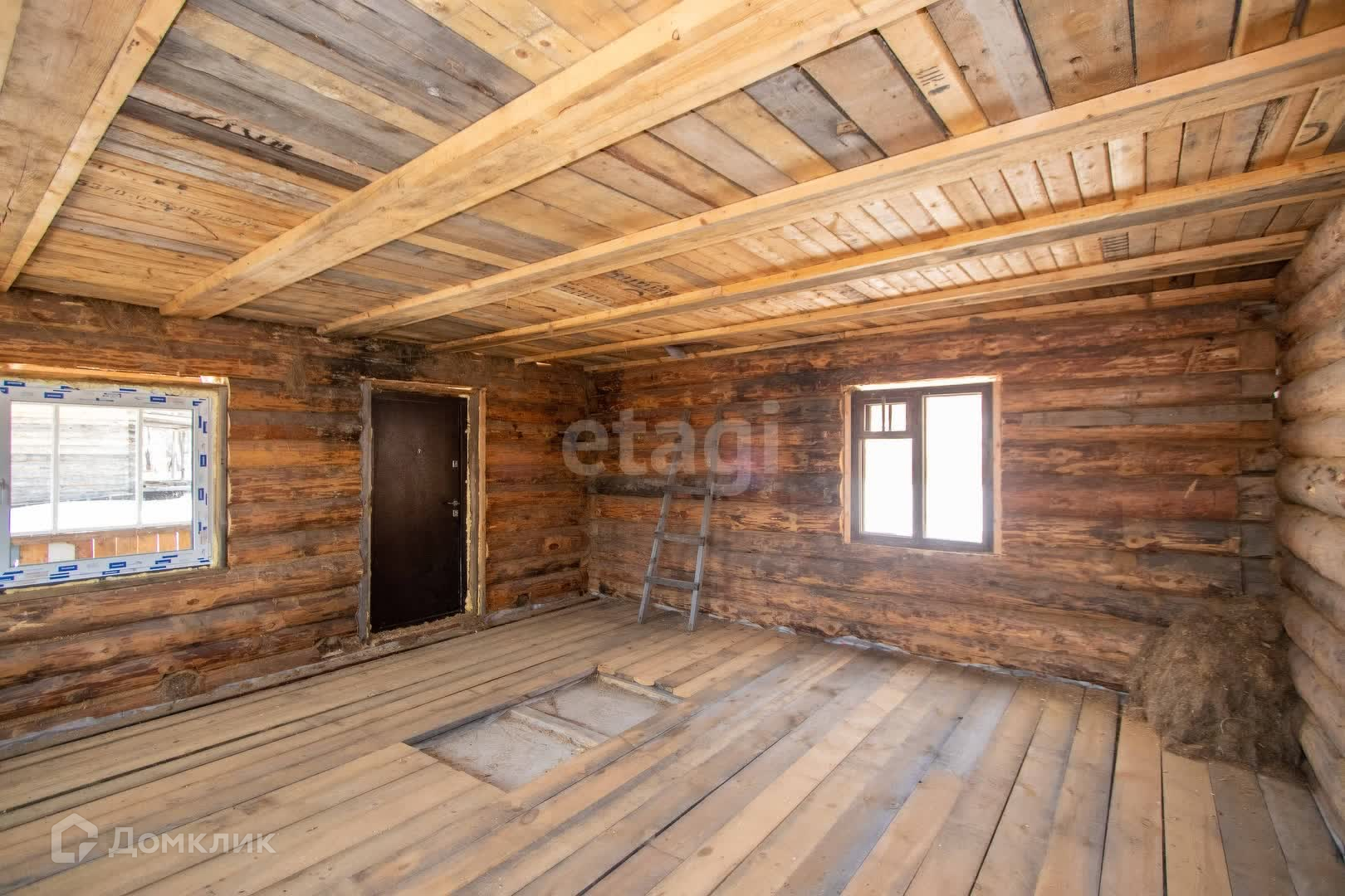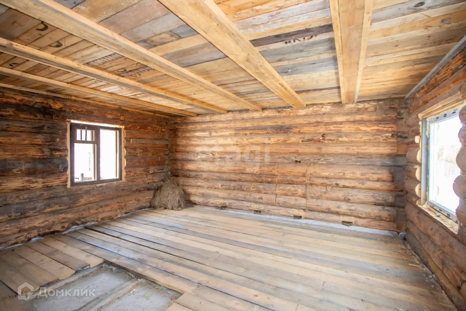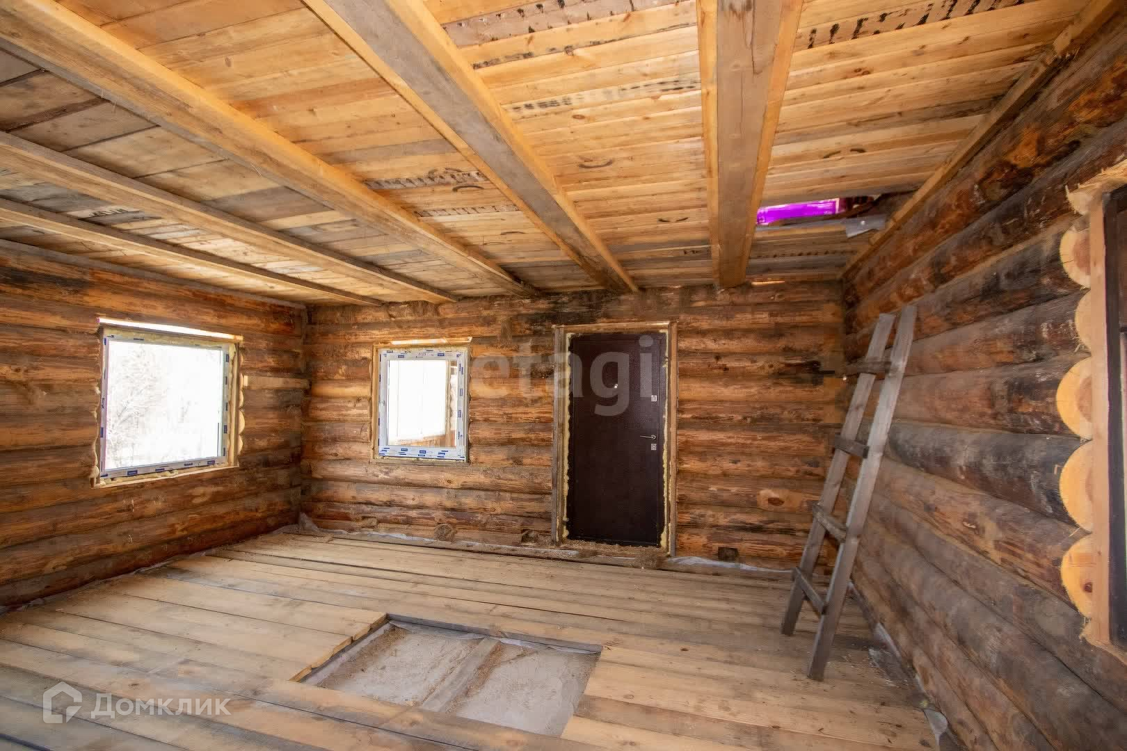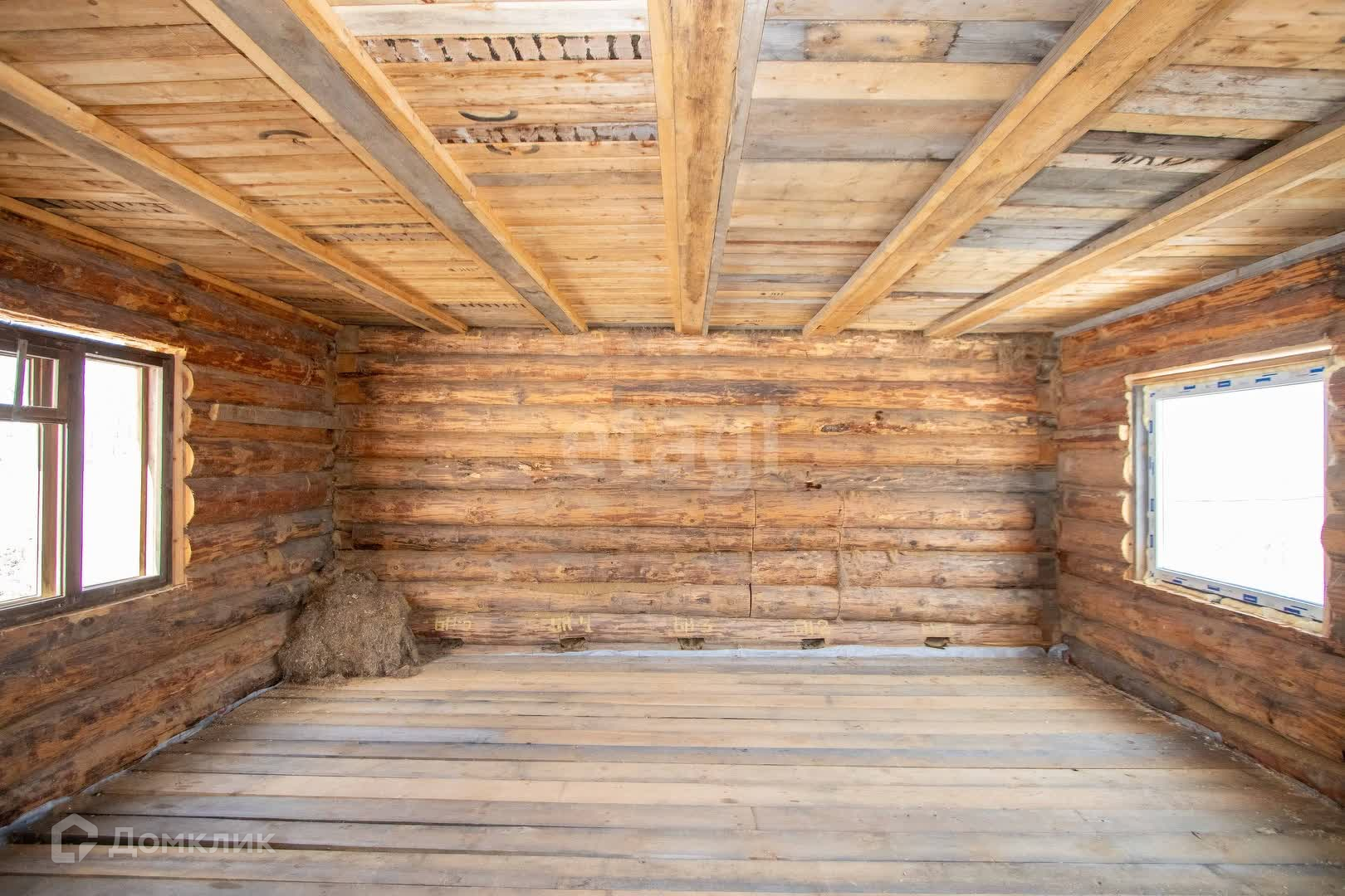 Добротный одноэтажный дом 6*6 м2 из кругляка на фундаменте + мансарда, на цокольном этаже гараж. Новые пластиковые окна. Полы утеплены.