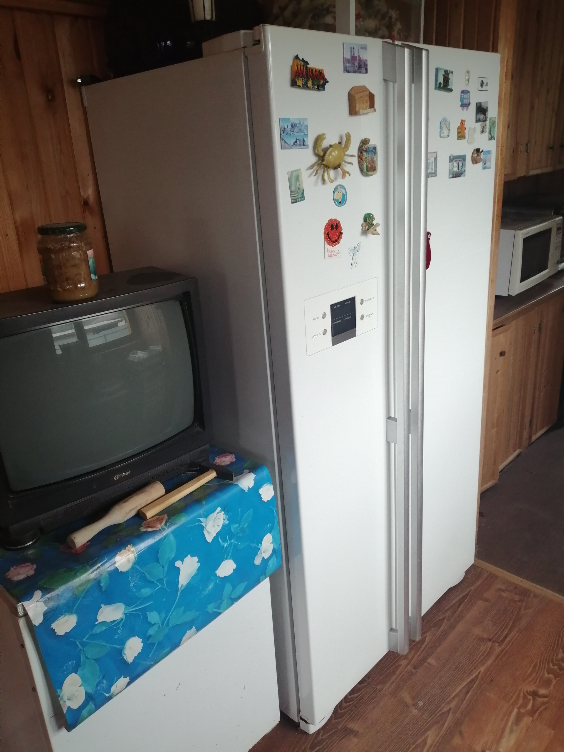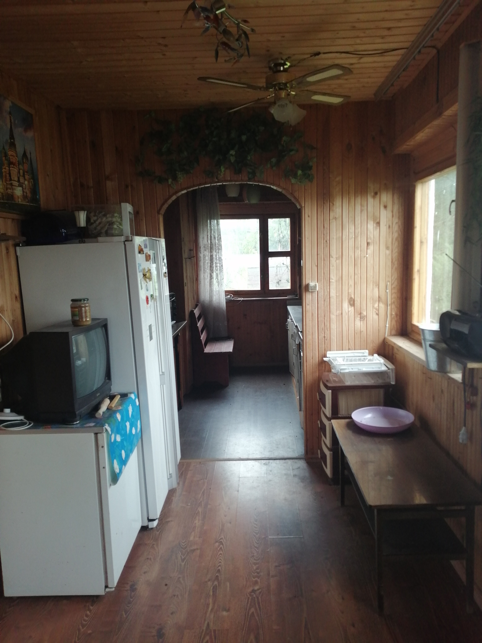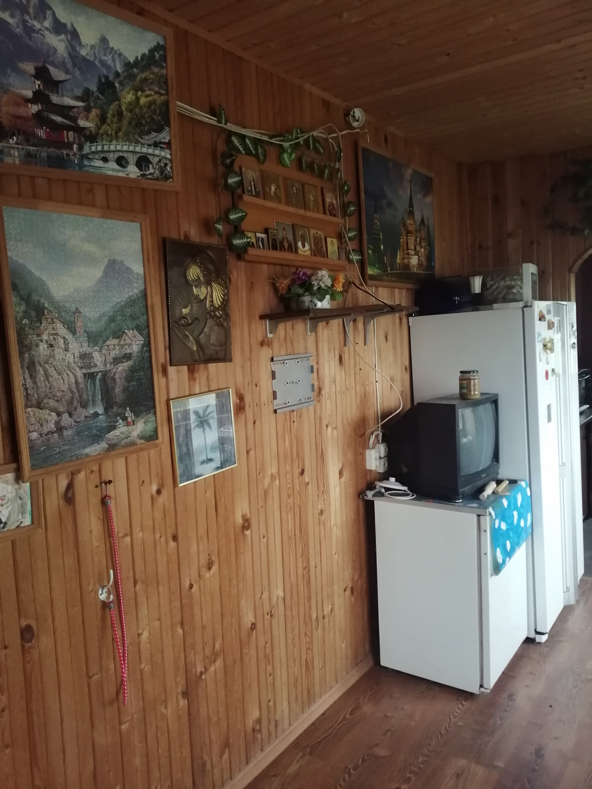 Стены первого этажа сделаны из кирпича, перекрытия - бетонные плиты, второй этаж - мансардный из дерева. Фундамент из бетонных блоков. Внутри дом отделан вагонкой, снаружи первый этаж оштукатурен. В доме душ, канализация (бетонные кольца вкопанные во дворе), туалет. На участке колодец, от него проведена вода к раковине на кухне (вкопаны отдельные кольца для стока воды), в душ и возможностью заправить отопление (система отопления с котлом и радиаторами). Для горячей воды необходим новый бойлер или заменить 1 тэн у старого. Отопление водяное, также присутствуют хорошие электрические конверторные обогреватели (на первом этаже). Второй этаж без отопления.