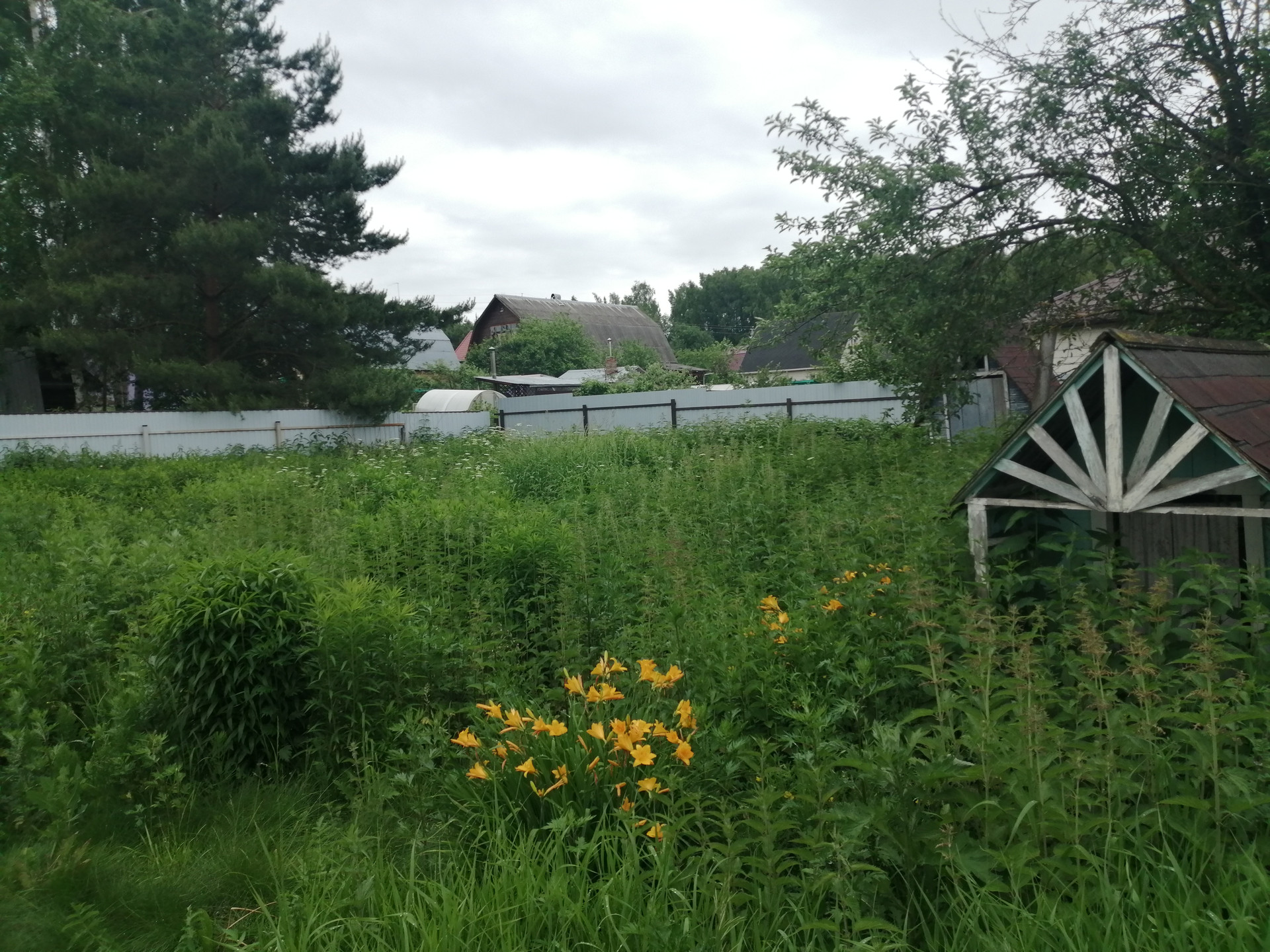 Забор из профлиста по периметру участка, имеются подъездные ворота и 2 парковочных места. Хорошие соседи, соседние участки благоустроены. Дороги в СНТ посыпаны щебнем, зимой дороги регулярно чистят. Закрытые ворота на въезде в СНТ (пропускной режим, открываются по телефонному звонку).