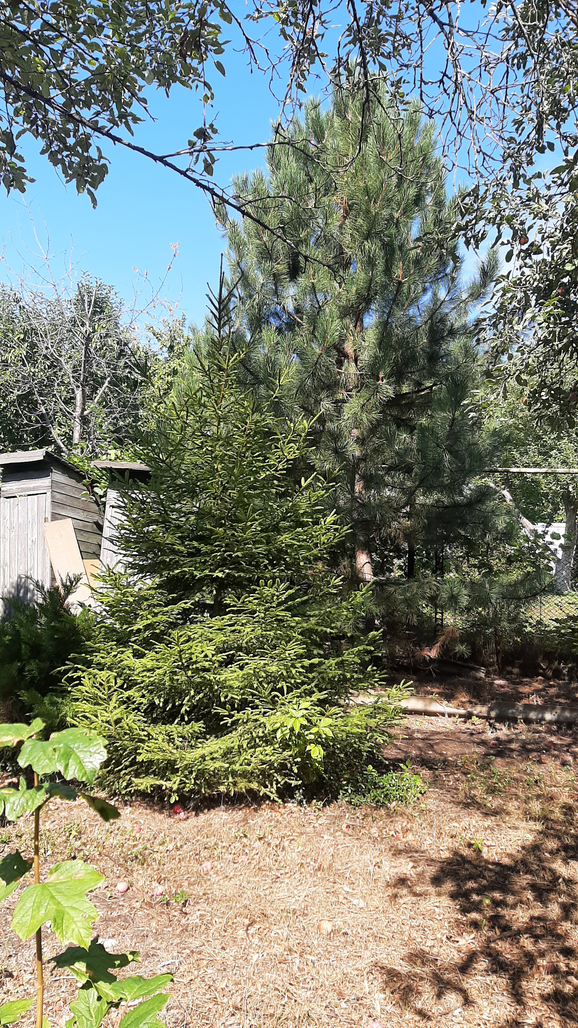 Участок ровный, правильной формы с красивыми еловыми насаждениями и плодовыми деревьями. Также есть место для парковки личного транспорта.