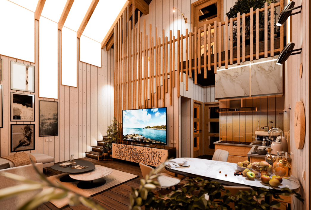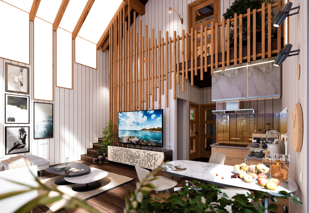 Дом построенный по проекту «Тальвос».Современная планировка со вторым светом сделает дом запоминающимся и неповторимым. Второй свет дополняется большими панорамными окнами, обеспечивающими постоянный доступ тепла и света. Общая площадь дома 88,6кв.м. Планировка: 2 спальни, терраса, крыльцо, 1 санузел, гостиная,кабинет.Строительство СИП-панельного дома Тальвос выполняется из строганой древесины камерной сушки и монтажом СИП, где используются плиты ОСП Calevala или Taleon, с классом безопасности Е0.5 или Е1. Даже стропильная система и перекрытия выполняются именно из строганой, сухой древесины.