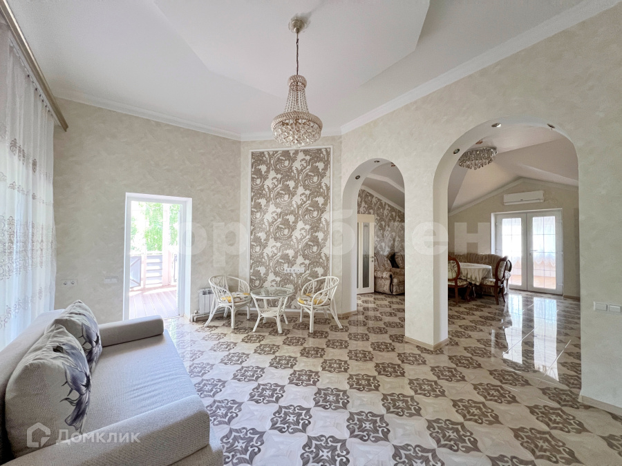 Фасад здания в стиле современной классики оштукатурен и декорирован белыми элементами. Перекрытия монолитные. В отделке интерьера использованы теплые оттенки, фактура дерева и камня, мозаика и орнаменты.