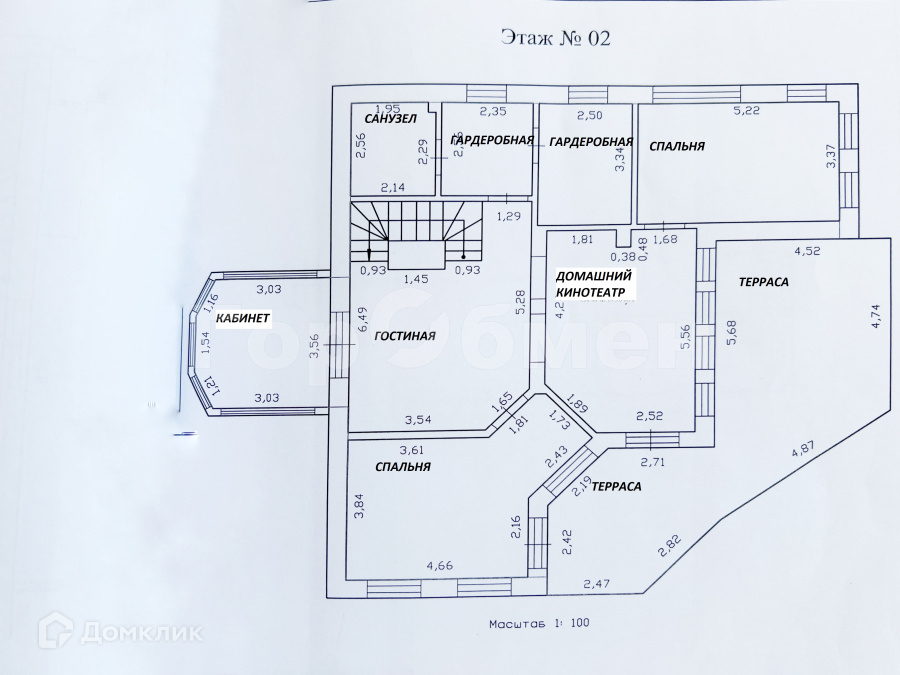 2-й уровень: три спальни, кабинет, гостиная с выходом на веранду, гардеробная, санузел, холл.