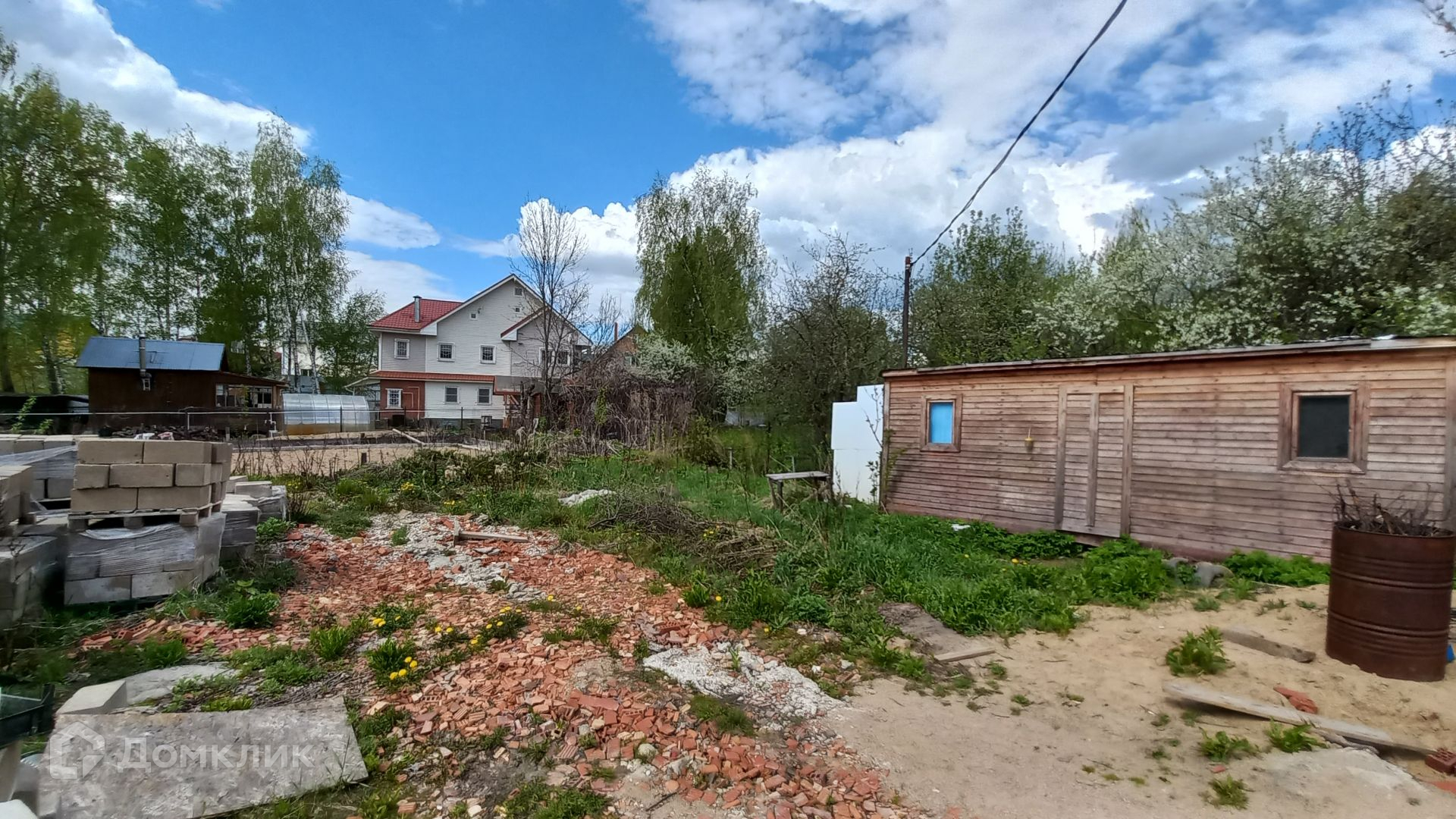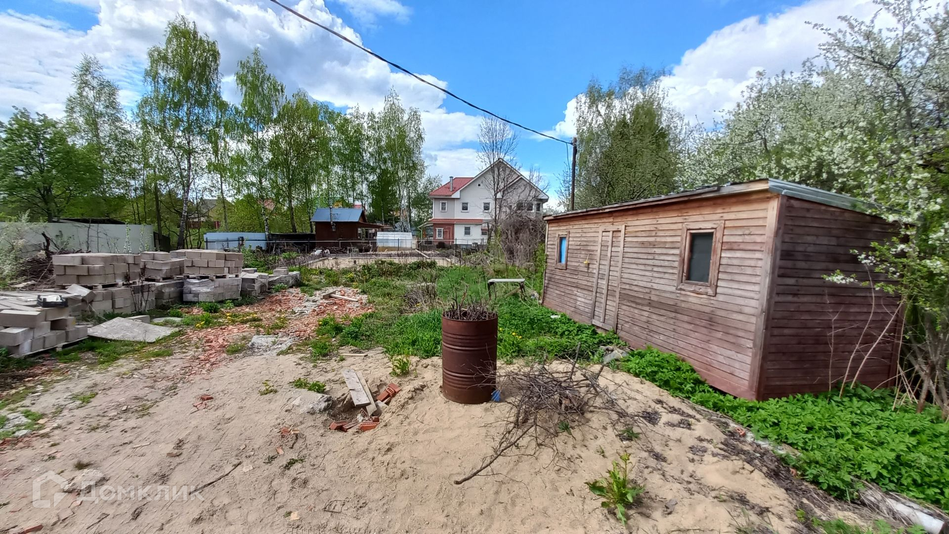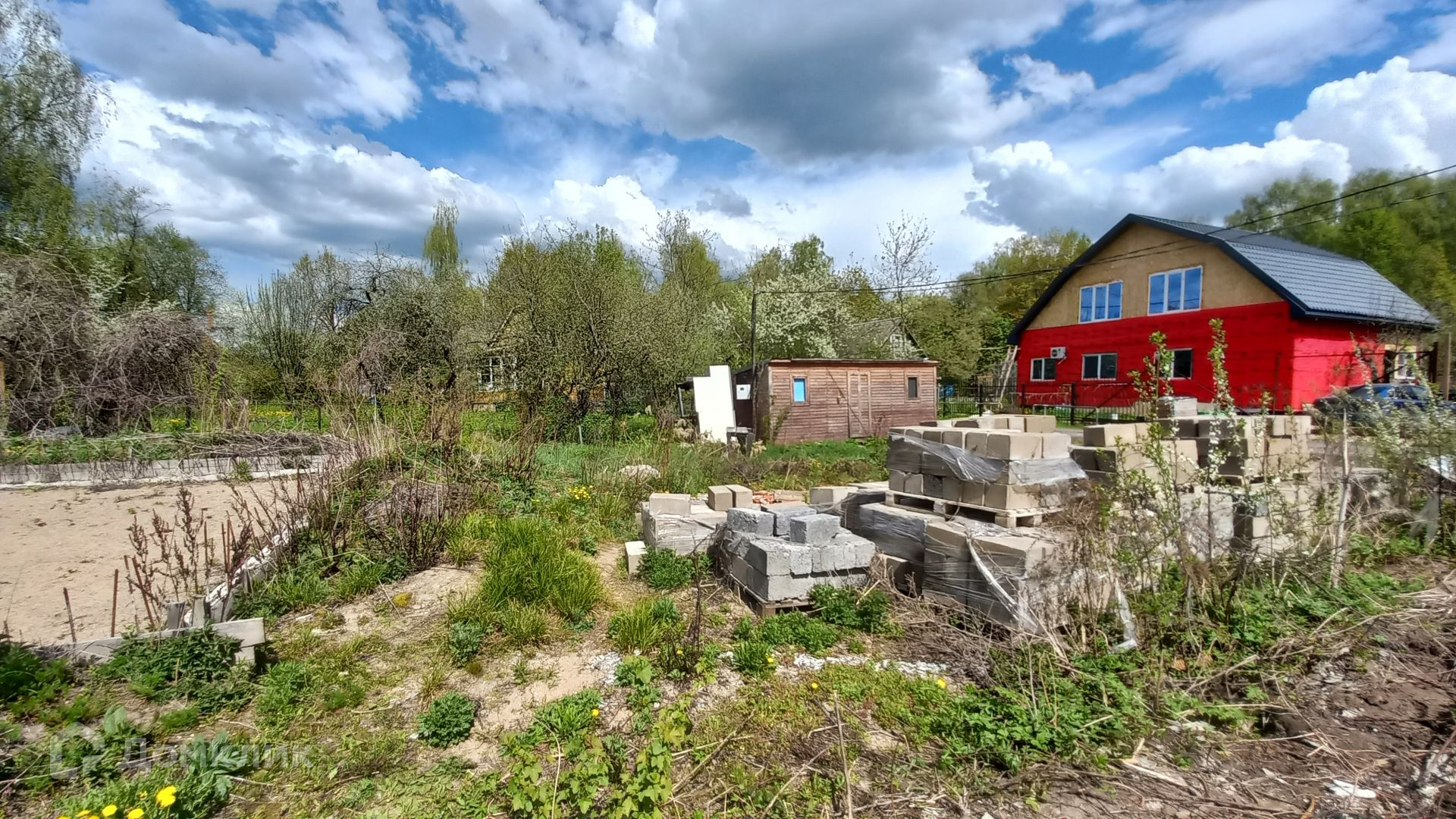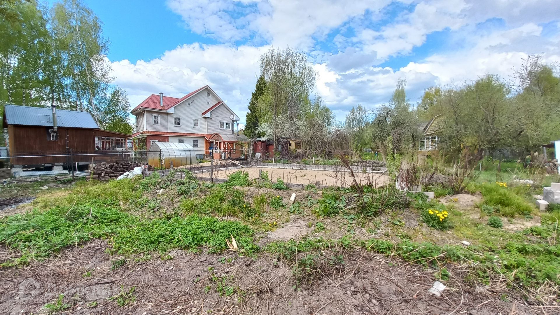 Участок правильной прямоугольной формы, ровный, зеленый, с двух сторон огорожен забором, имеет свой выход к пруду, где можно организовать зону отдыха и барбекю. На участке имеется бытовка (входит в стоимость) с подведенным электричеством, ленточный фундамент 10 х 12 метров, глубиной 120 см, фундамент выполнен по всем технологиям, 300-я марка бетона, выполнена песчаная подушка глубиной 60 см, так же установлена система дренажа.