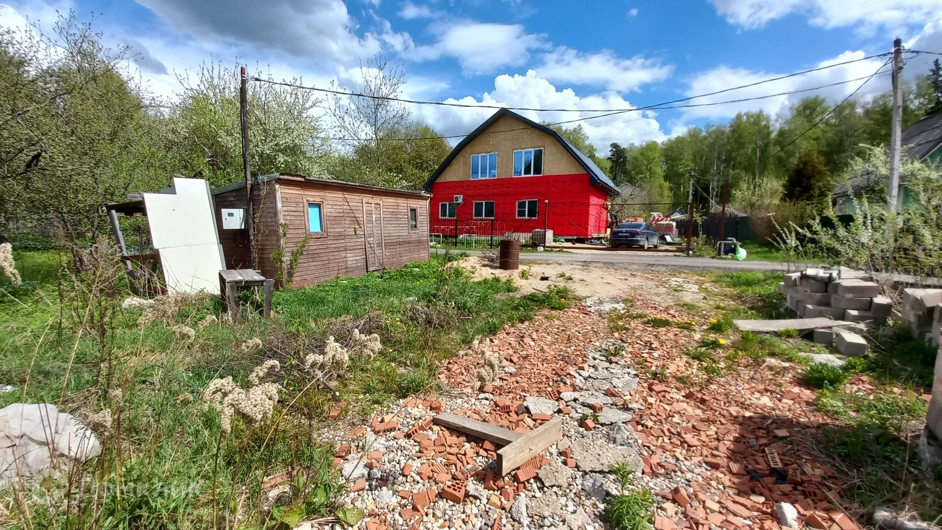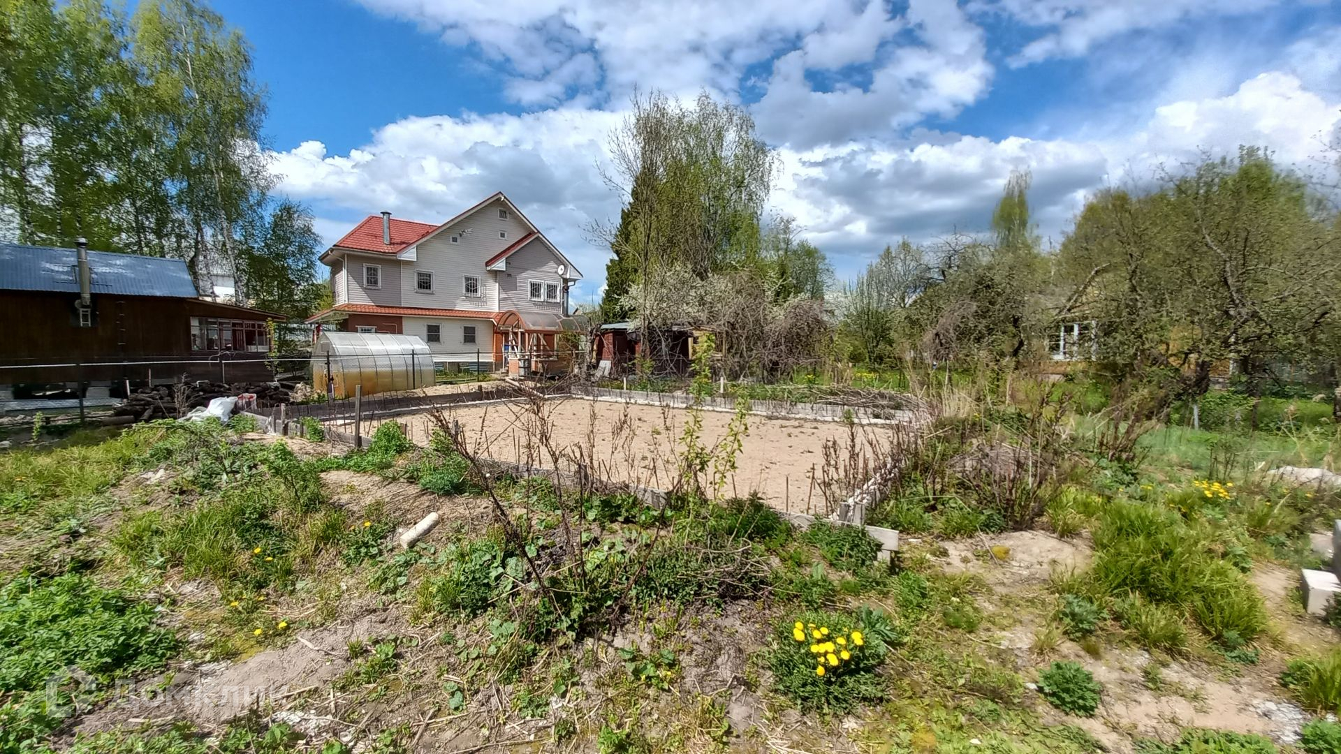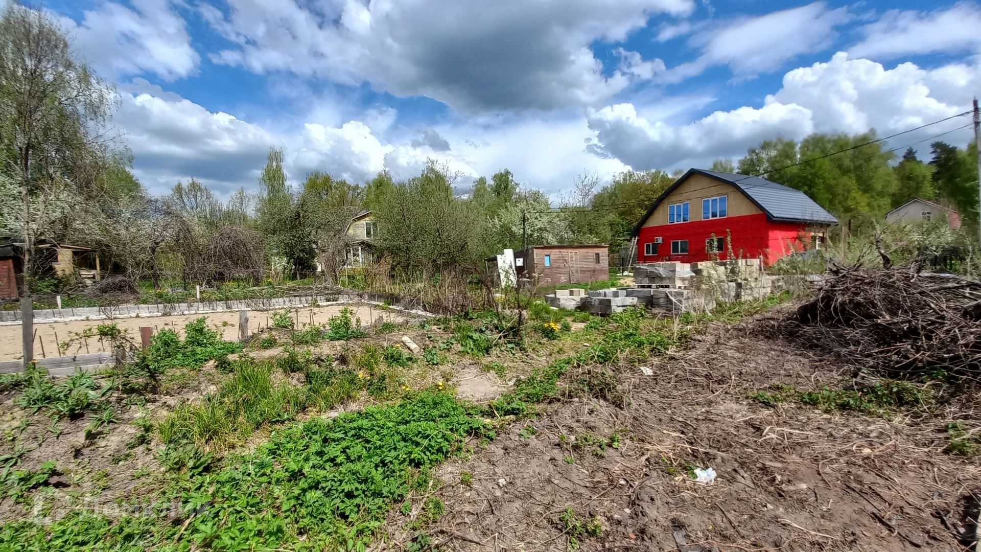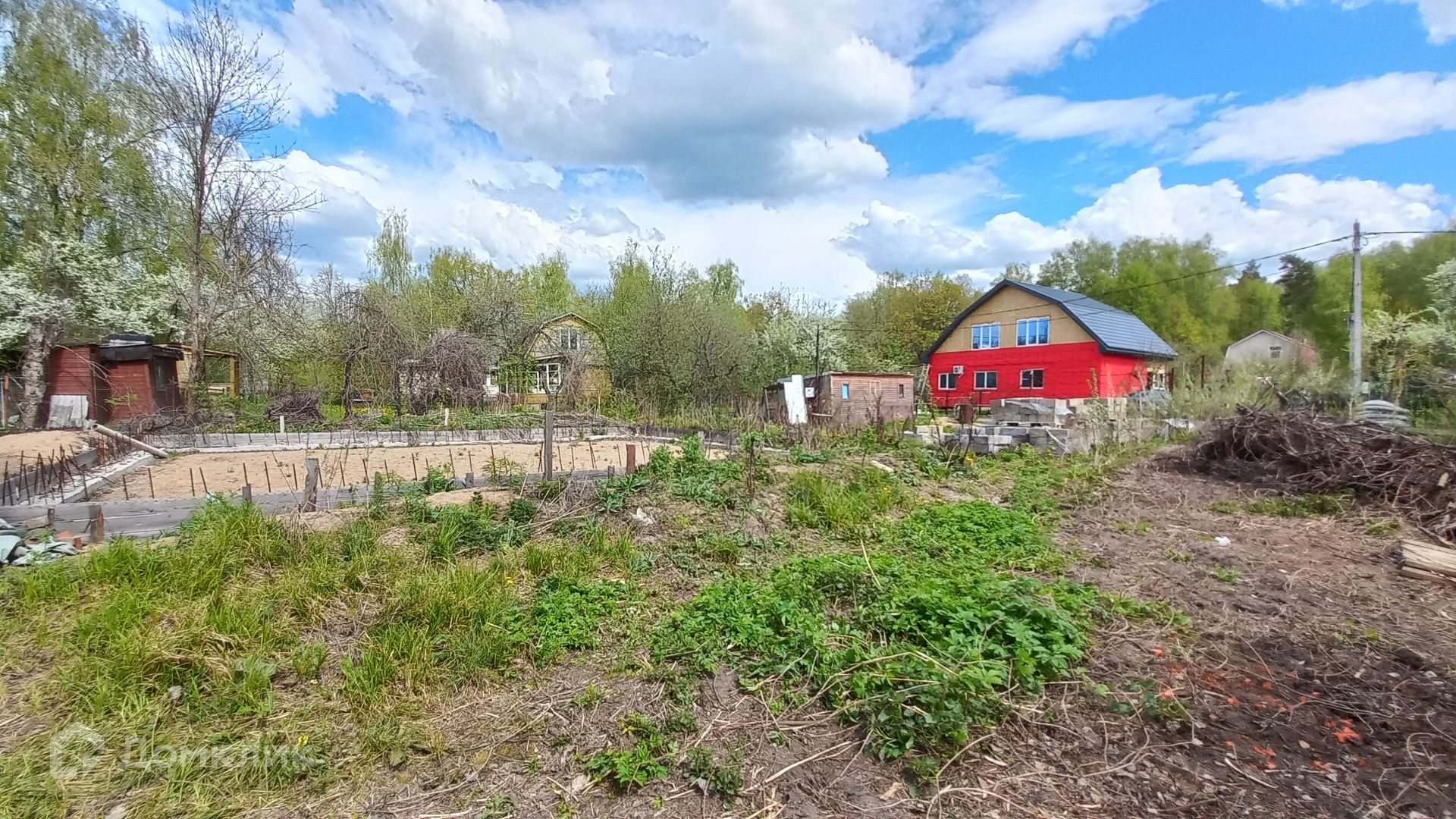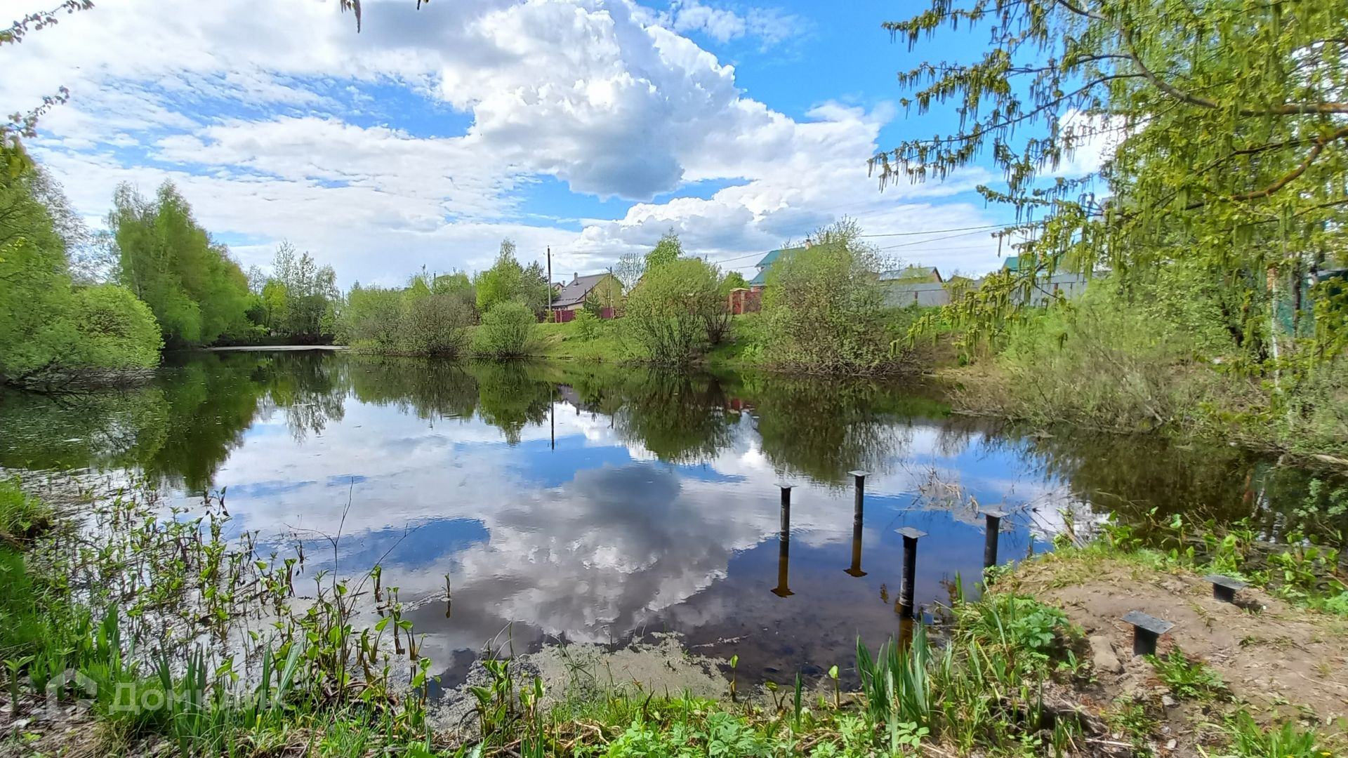 Участок правильной прямоугольной формы, ровный, зеленый, с двух сторон огорожен забором, имеет свой выход к пруду, где можно организовать зону отдыха и барбекю. На участке имеется бытовка (входит в стоимость) с подведенным электричеством, ленточный фундамент 10 х 12 метров, глубиной 120 см, фундамент выполнен по всем технологиям, 300-я марка бетона, выполнена песчаная подушка глубиной 60 см, так же установлена система дренажа.
