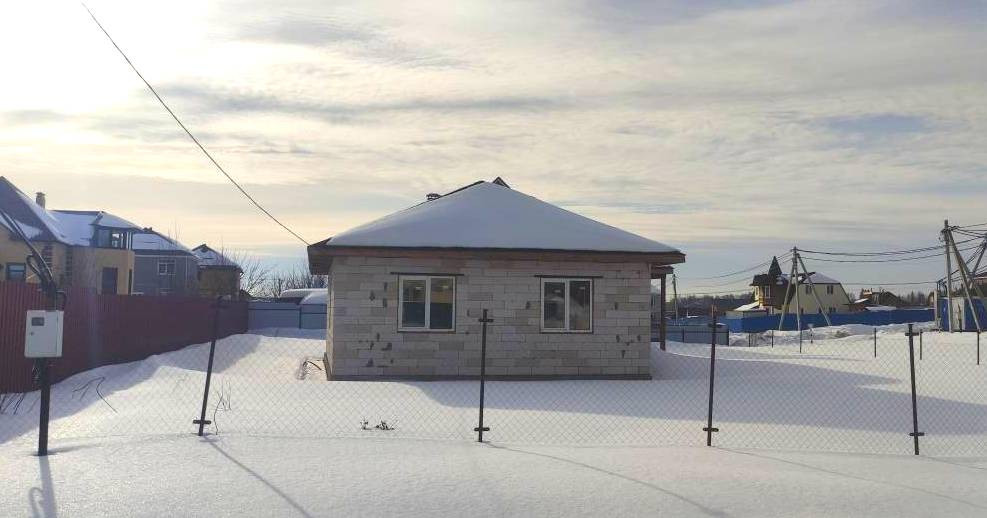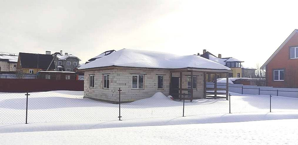 Дом – 95,6 кв.м. стоит на кадастровом учете, 1-этажный, материал стен блоки, по всему периметру дома установлены стеклопакеты. Фундамент – плита, крыша четырехскатная из мягкой кровли, дом без внутренней отделки.