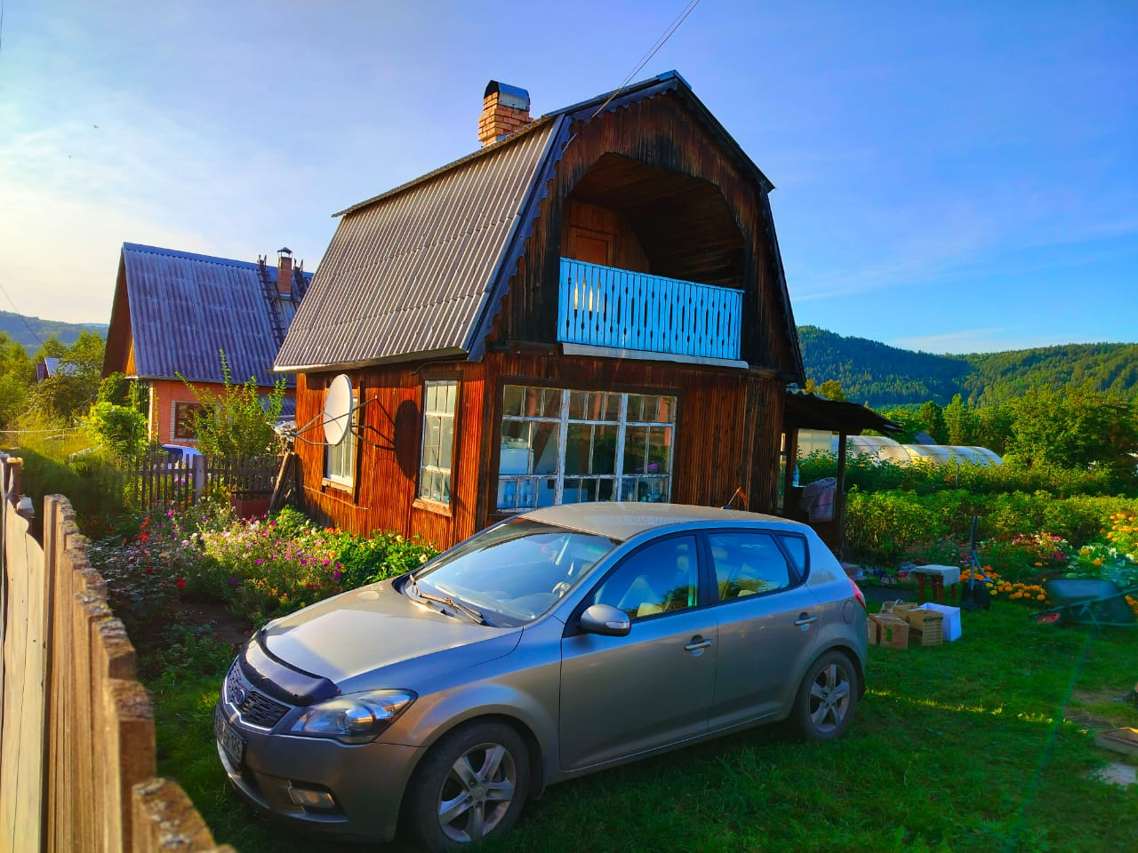 В  доступности - река Мана и горы, таёжная лесная расщелина, свой микроклимат.