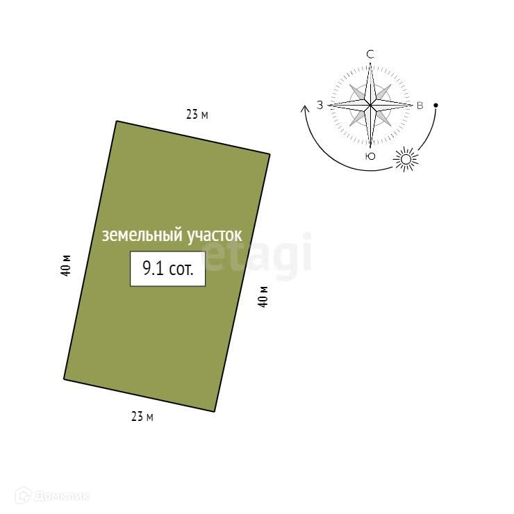 Площадь участка 9.1 сот.
