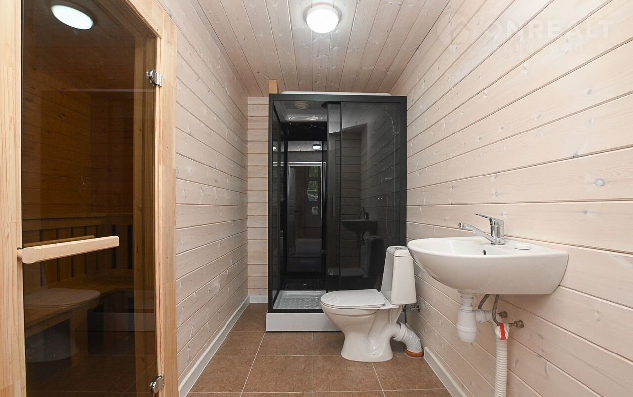 — Отопление реализовано через тёплый пол с возможностью управления по Wi-Fi — В санузле, парилке, тех. помещении и коридоре уложен керамогранит