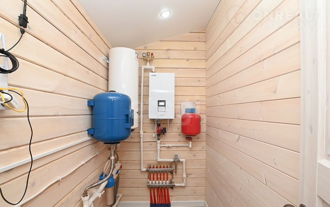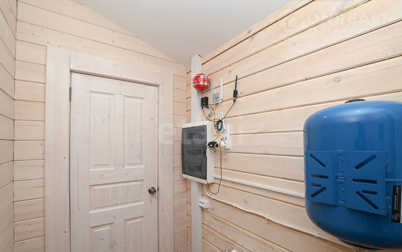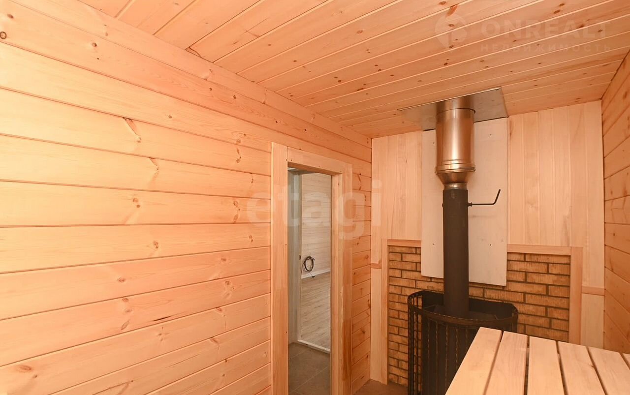 Фундамент выполнен из буроналивных свай диаметр 250 мм. глубина 2,5м. Обвязка, лаги и черновые полы из лиственницы с утеплением 200мм. Чистовые полы, бетонные с трубами теплого пола и ламинатом (толщина 1см.). Отопление электрокотел ZОТА Luхе, управление WiFi. Дровяной камин (сделан из стали, толщина 8мм). В санузле ванна, также есть место для стиральной машины. Парилка на дровах , в банной печи можно разместить до 200 кг камня. В санузле ,парилке , тех. комнате и коридоре пол качественный керамогранит под мрамор. Натяжной потолок. Терраса из лиственницы под крышей . Скважина 60м , септик 3 кольца по 1,5м., подвод воды утеплён, с нагревающим кабелем. Крыша утеплена 200мм., металлочерепица.