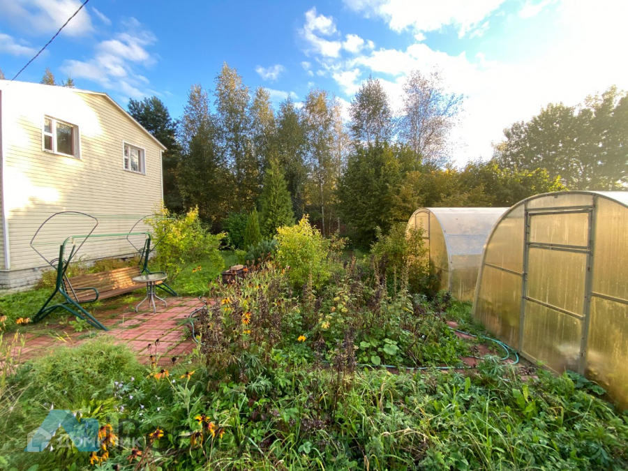 УЧАСТОК: 6 соток, сухой, правильной формы, разработанный и ухоженный, с разнообразием декоративных растений и плодовых деревьев  (среди которых южная слива, тибетская малина, розовая акация и  множество других). Два парника. Пруд с нимфами. Есть летний водопровод. Место для парковки на несколько машин. Хозблок.