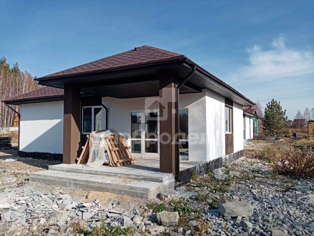 - 2021 г. постройки, пенобетон с утеплением, отделка короед. В любое время года в доме тепло. Стоит э/котел, вода заведена в дом (скважина 40 м), канализация автономная Урал-3, в доме так же есть теплые водяные полы, стяжка пола, стены выровнены под чистовую, потолки отделаны влагостойким гипсокартонном.