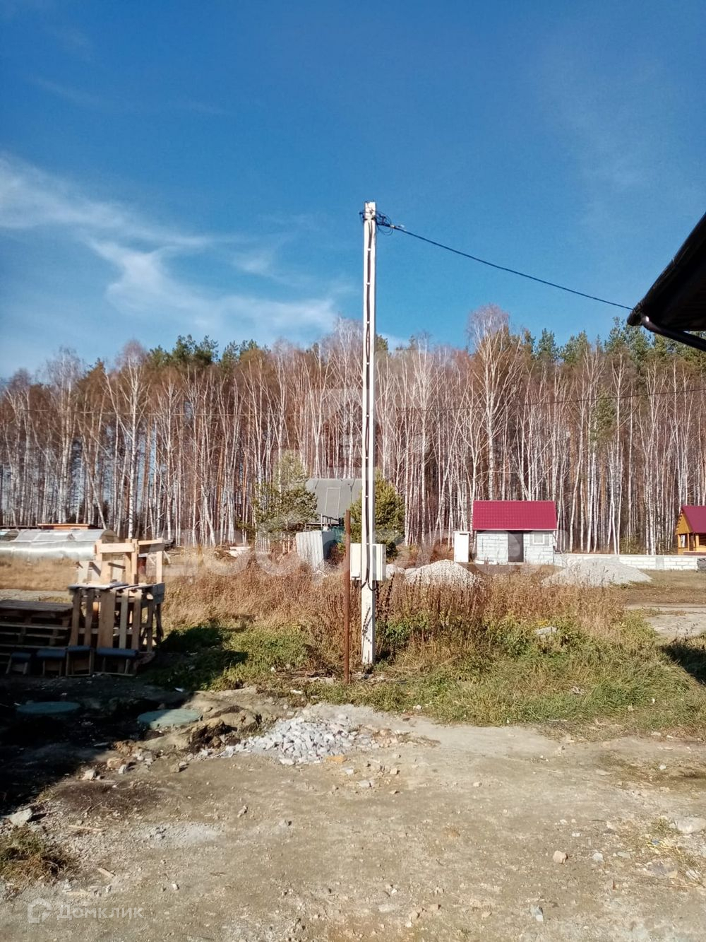 Ровный участок 8 соток, выровнен, электричество 380 Вт, стоят стойки под забор.