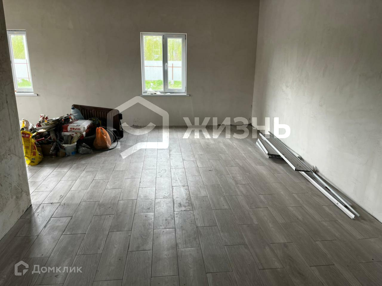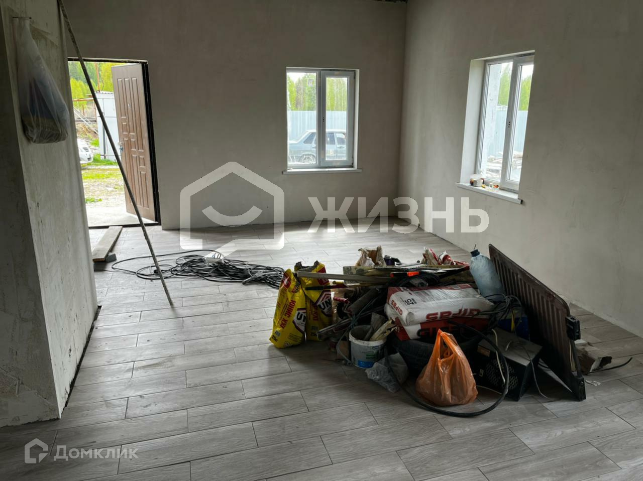 Внутри дом под чистовую отделку. Коммуникация дома: автономная канализация, водоснабжение осуществляется при помощи скважины, система заливных тёплых полов. Первый этаж свободная планировка ( одна большая общая комната включающую в себя гостиную и кухню), туалет, котельная. Отличная дорога до сада и в самом саду.