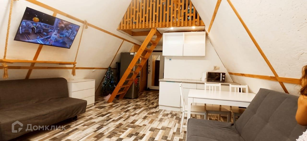 - дом построен на сваях, каркасный, использован утеплитель ( 200). В доме две комнаты - первый этаж кухня- гостинная со спальными местами, на втором этаже комната 3*3 - с одним спальным местом.