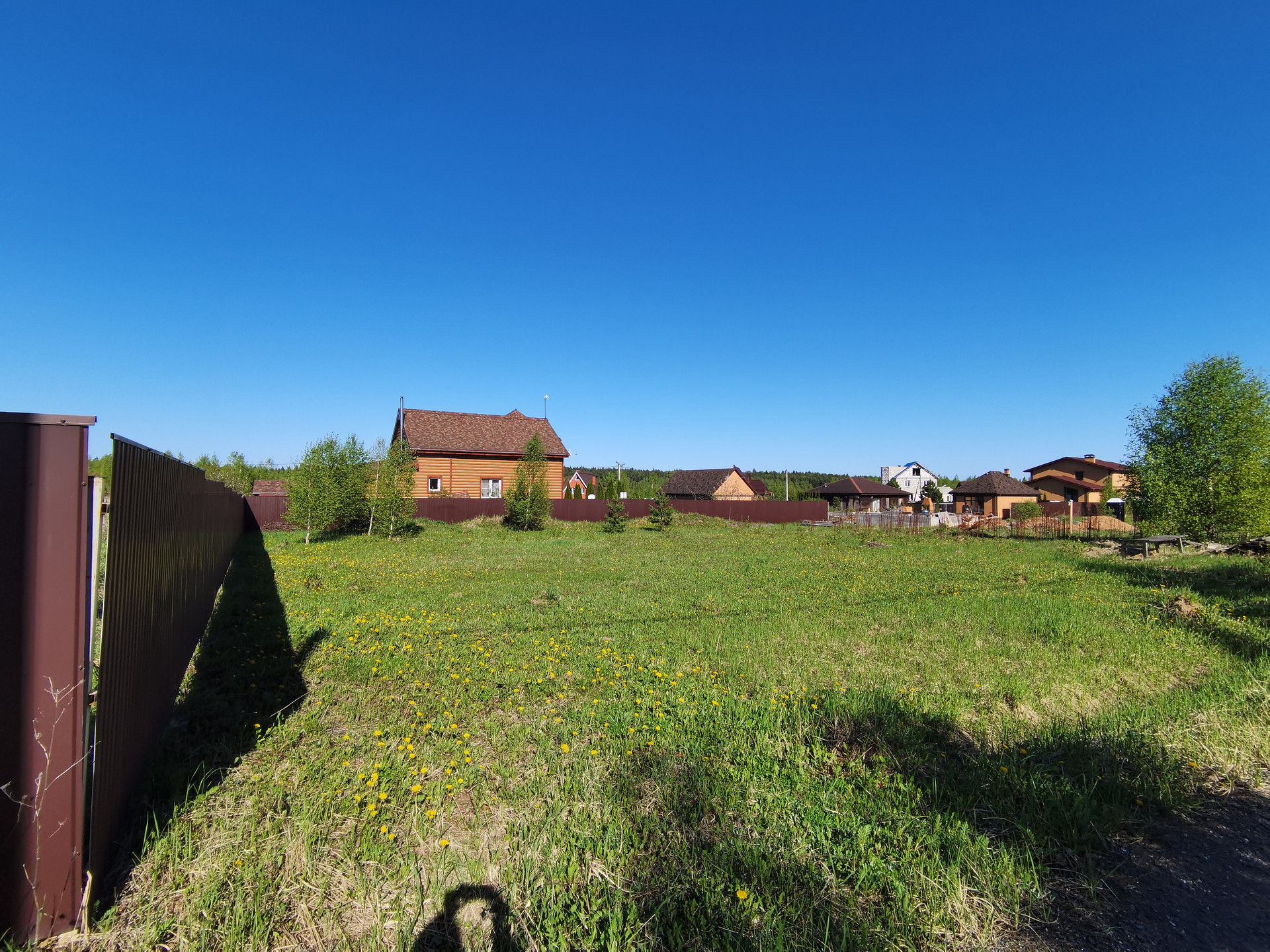 Фундамент с цокольным этажом, перекрыт плит перекрытиями под строительство двух этажного дома. Имеется проект дома. Соседи живут с двух сторон. Третья тыльная сторона- граница ДНТ. Дороги отсыпаны асфальтовой крошкой.