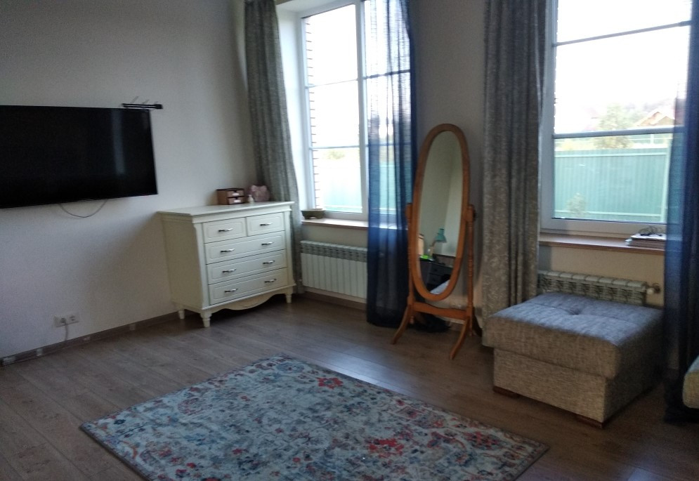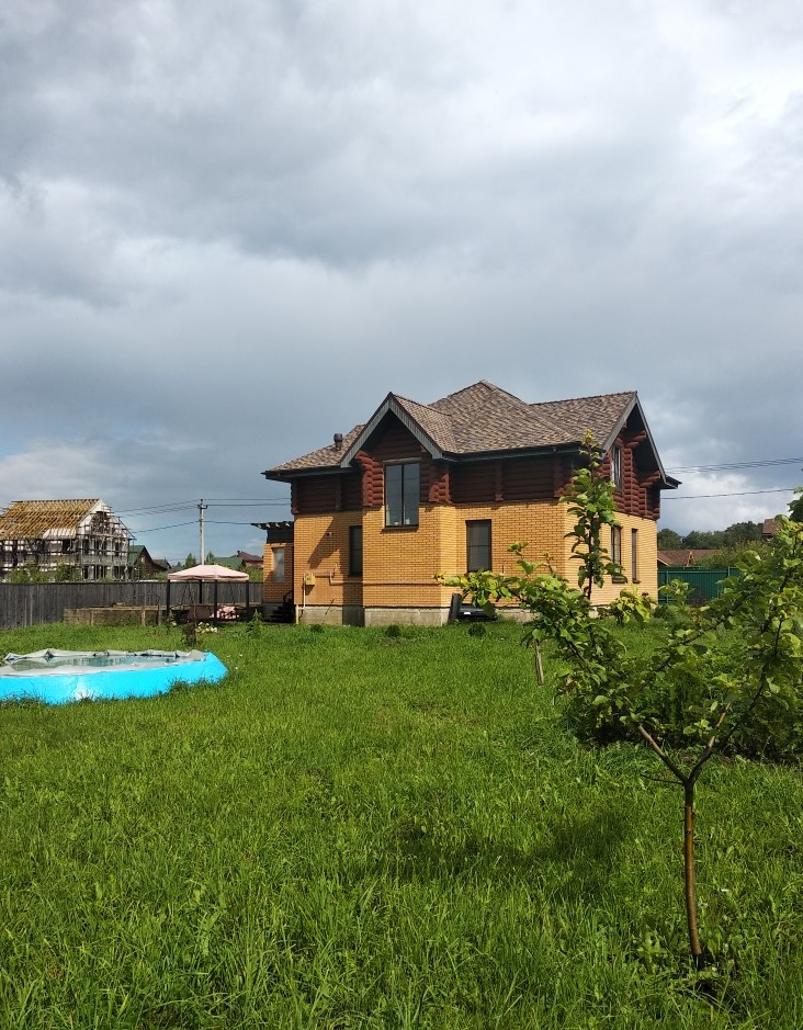 Первый этаж стены - пеноблок, далее утеплитель, далее облицовочный кирпич (100 кв. м) включает кухню-гостиную, комнату, котельную, санузел с окном, теплый пол в зоне прихожей и кухни 50 кв. м, зал - ламинат. Второй этаж 50 кв . м – стены бревно включает 3 комнаты, санузел. Два кондиционера (на 1 и 2-ом этаже). Далее оборудован чердак 50 кв. м. Сделаны откатные ворота. Участок угловой, вторая линия от леса. Дом для круглогодичного проживания. Возможна постоянная регистрация (прописка). Кухня оснащена гарнитуром, посудомоечной машиной, газовая плита с духовым шкафом, холодильник. Стиральная машина расположена в хозблоке (котельной). На участке высажены плодовые и хвойные деревья.