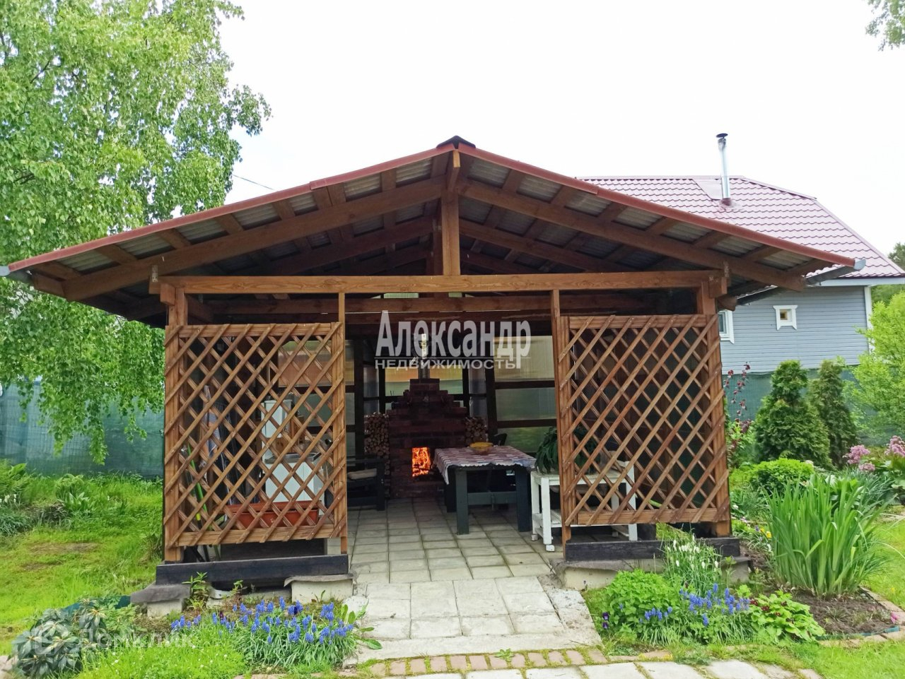 -Участок 7 соток, сделан ландшафтный дизайн, есть беседка с камином для посиделок, мангальная зона.  В помещении установлена душевая кабина и туалет, заведено водоснабжение.