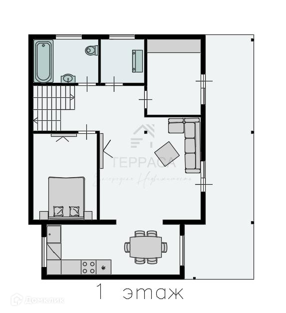 1 этаж – кухня-гостиная, изолированная комната, прихожая, котельная, с/у.