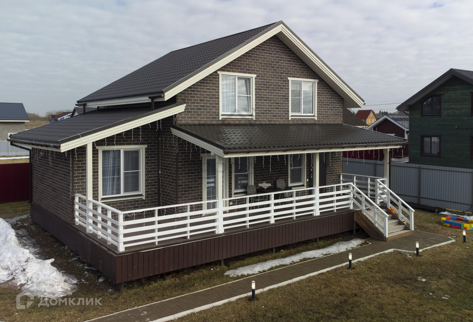 Дорожки и парковка на 4-5 машин вымощены брусчаткой. Вдоль дорожек выполнена световая иллюминация.